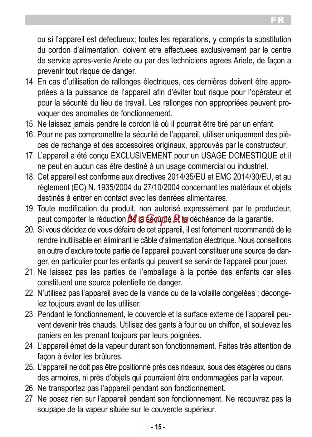 de service apres-vente Ariete ou par des techniciens agrees Ariete, de façon a