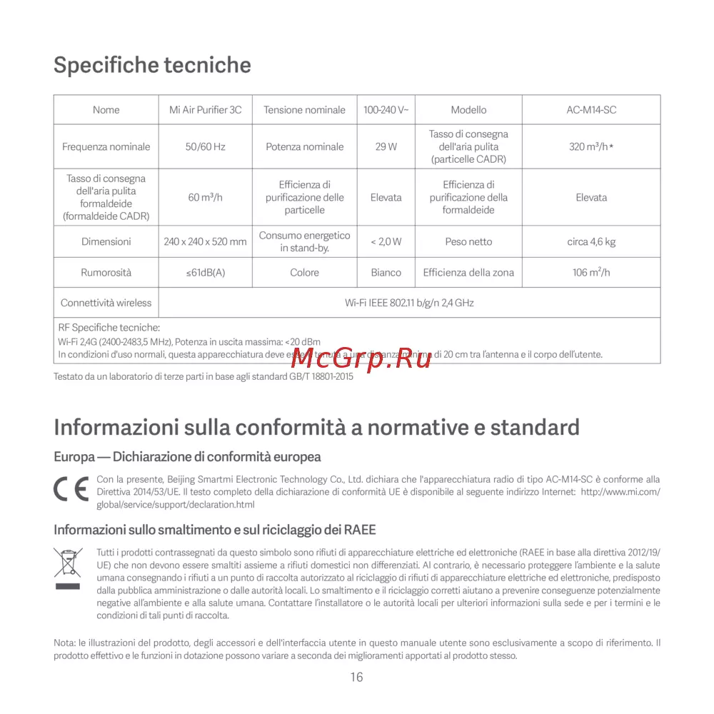 ![Xiaomi Mi Air Purifier 3C EU (BHR4518GL) [17/126] Specifiche tecniche](/views2/1729694/page17/bg11.png)