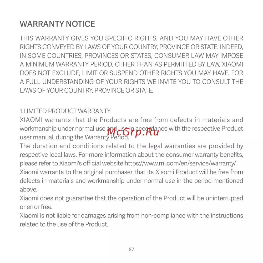 Xiaomi does not guarantee that the operation of the Product will be uninterrupted