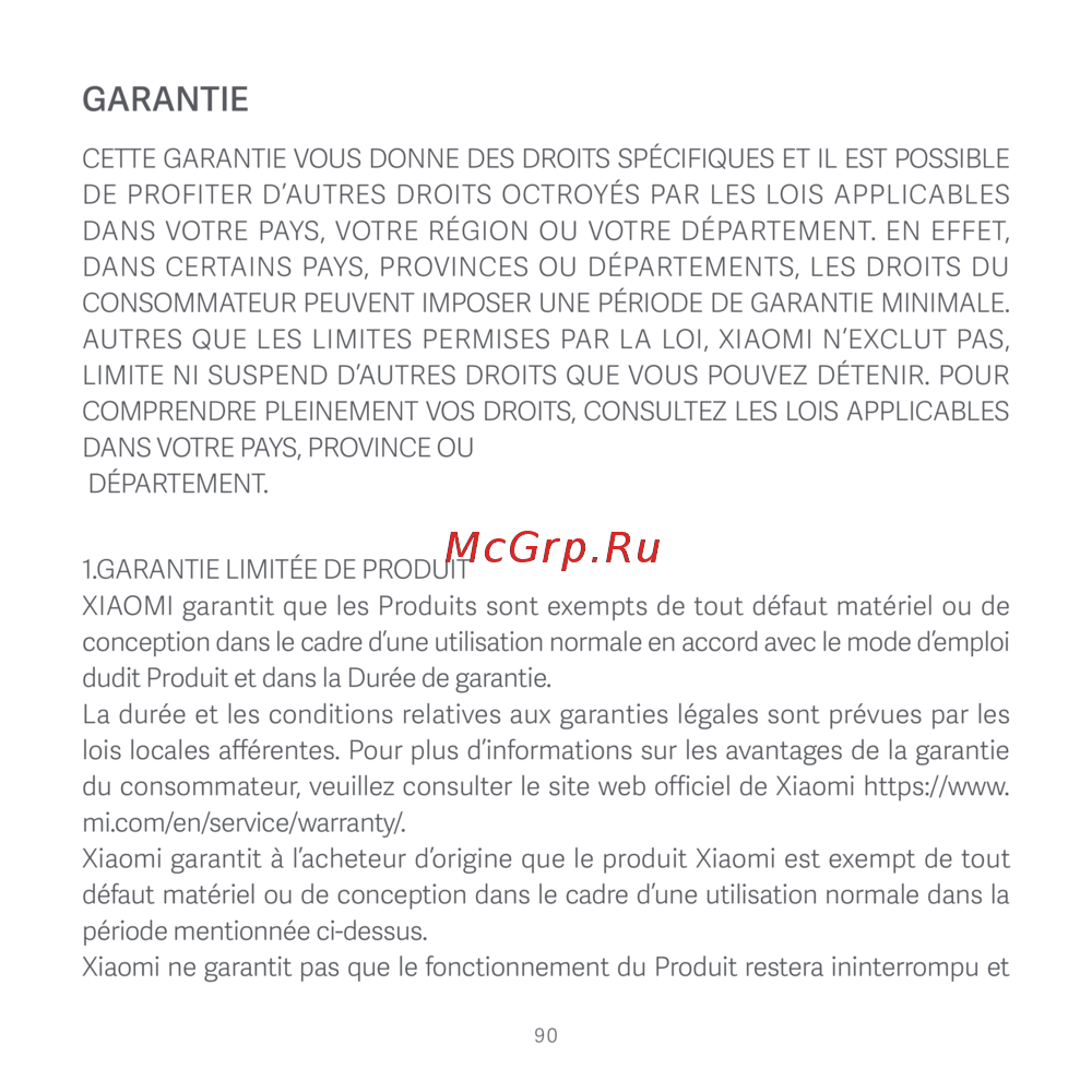 XIAOMI garantit que les Produits sont exempts de tout défaut matériel ou de