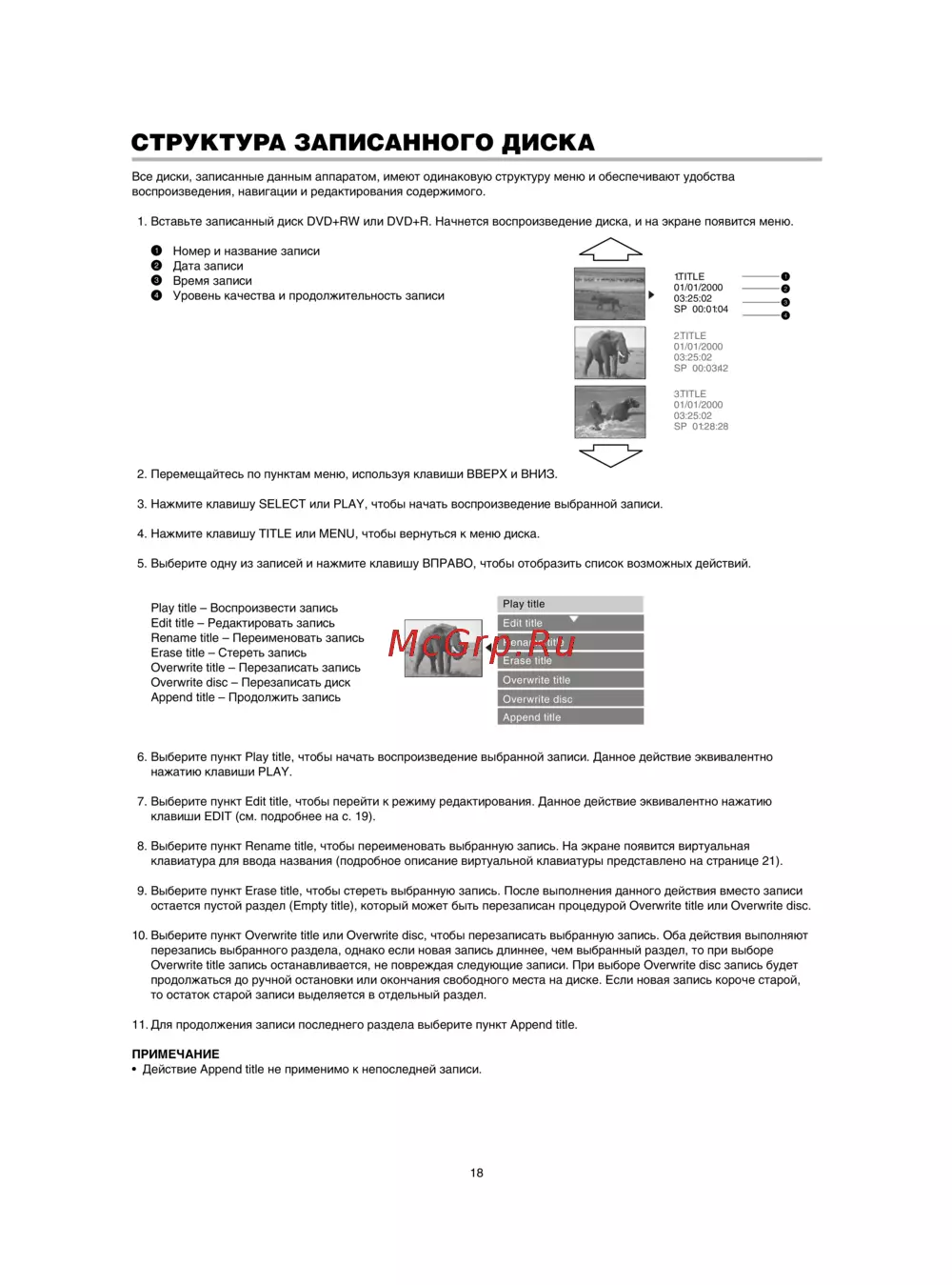 Все диски, записанные данным аппаратом, имеют одинаковую структуру меню и обеспечивают удобства