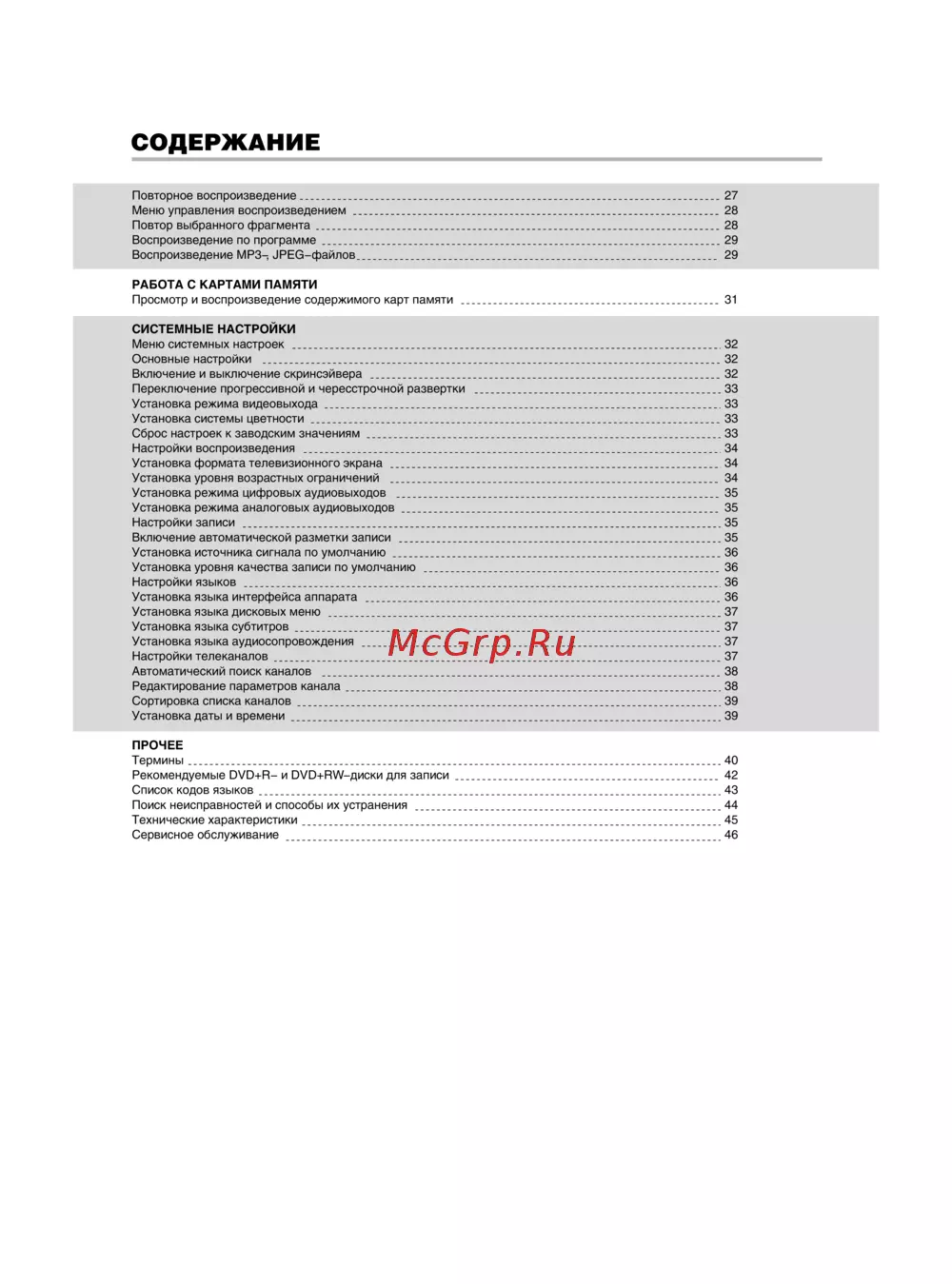 - Прочее p.44