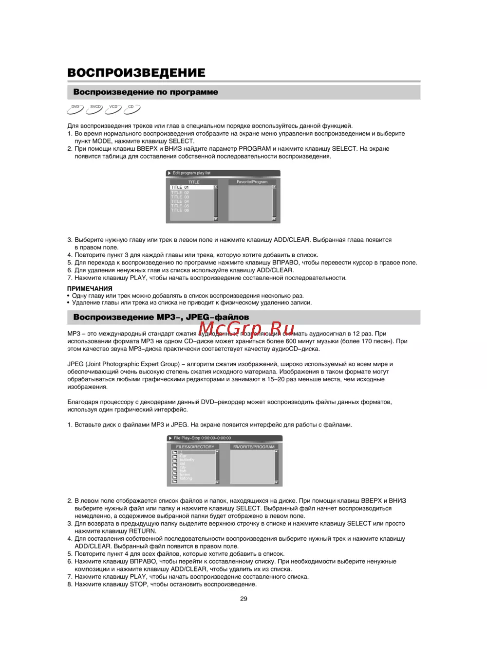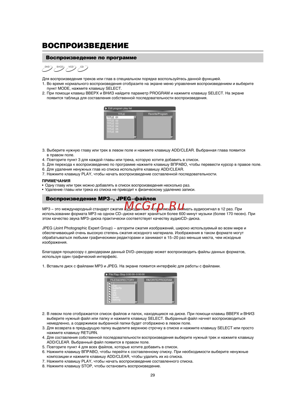 - Воспроизведение дисков содержащих файлы мрз и jpeg p.34
