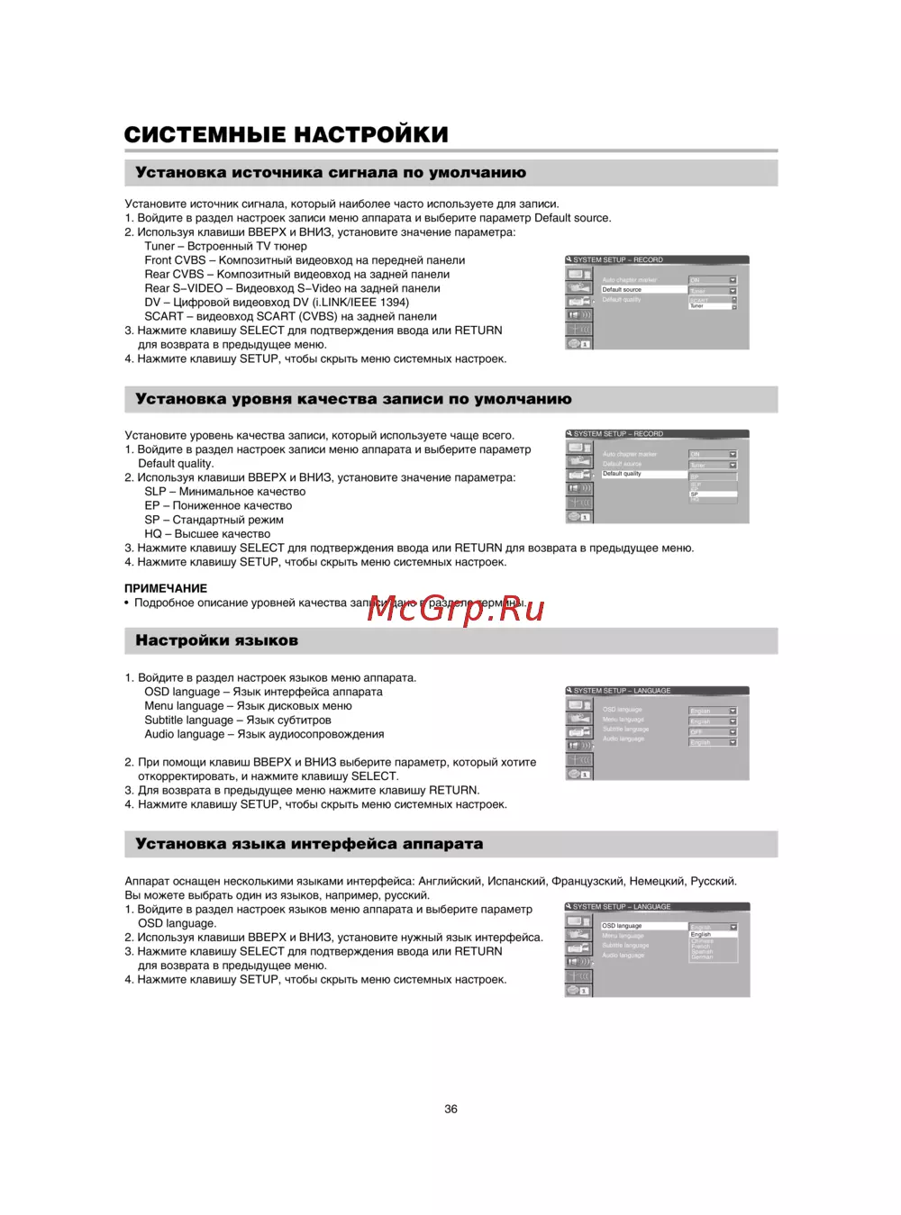 - Переключение прогрессивной и чересстрочной развертки p.37
