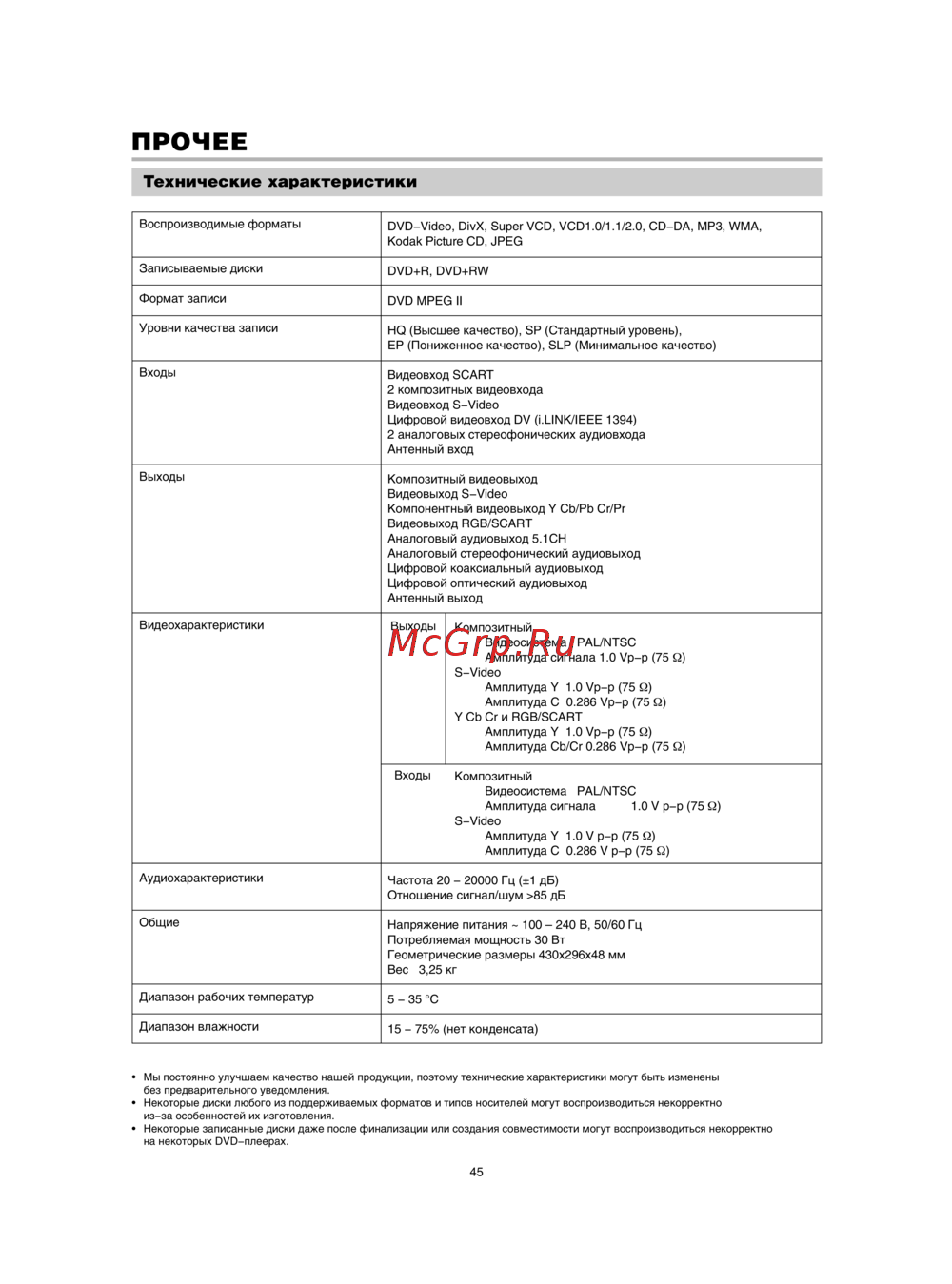 • Некоторые диски любого из поддерживаемых форматов и типов носителей могут воспроизводиться некорректно