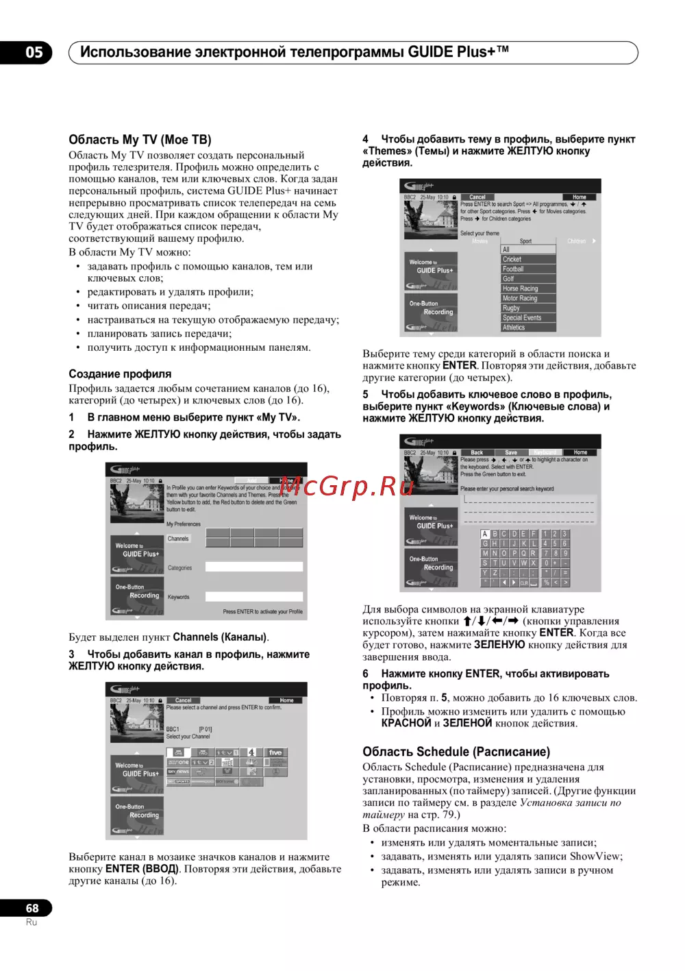 Использование электронной телепрограммы GUIDE Plus+™