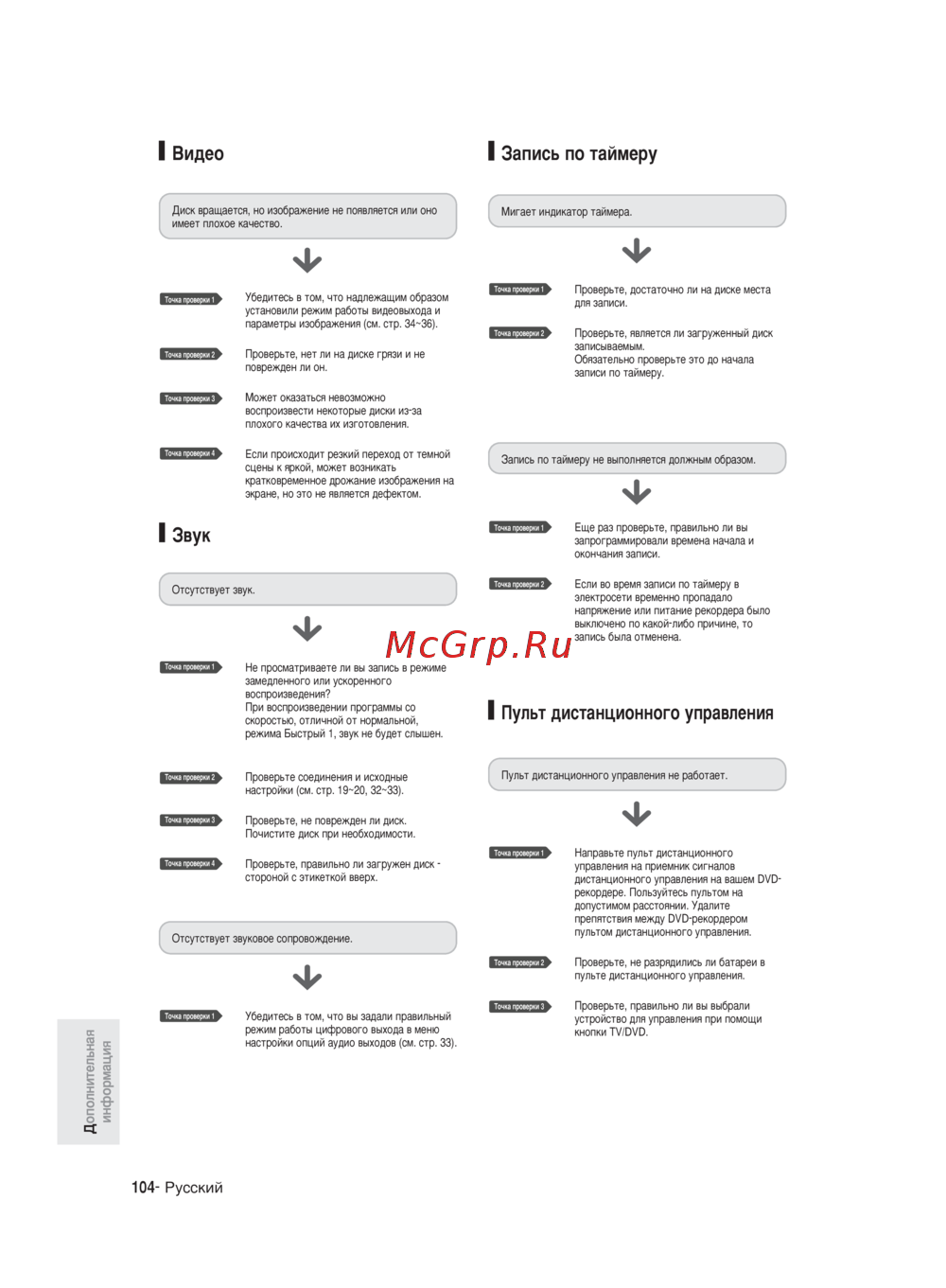 Samsung DVD-R140 MK — проблемы с записью и воспроизведением видео: советы по устранению [104/216]