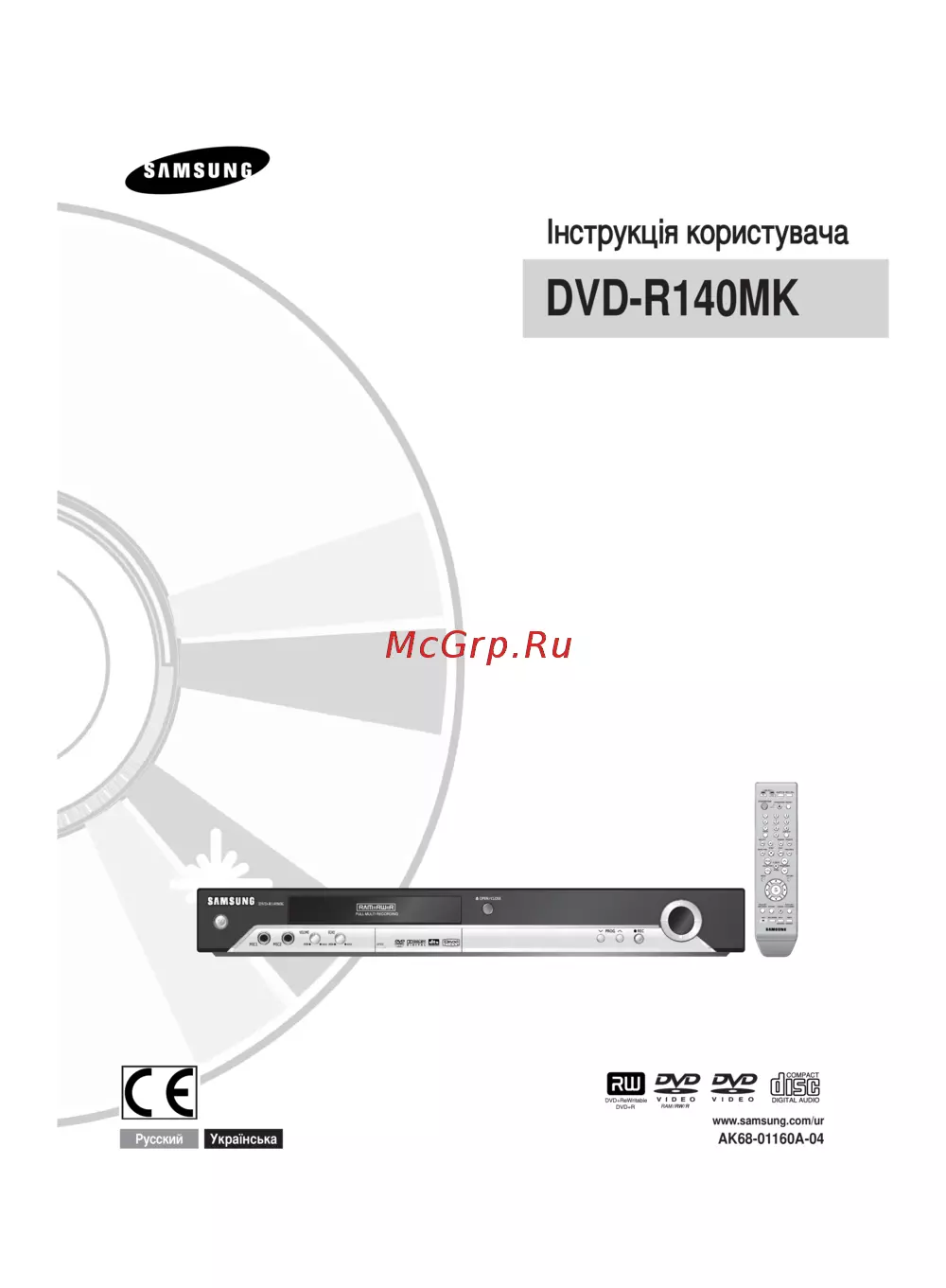 AMSUN 1нструкц я користувача DVD R140MK www samsung com ur Русский I Укра Унська АК68 01160А 04