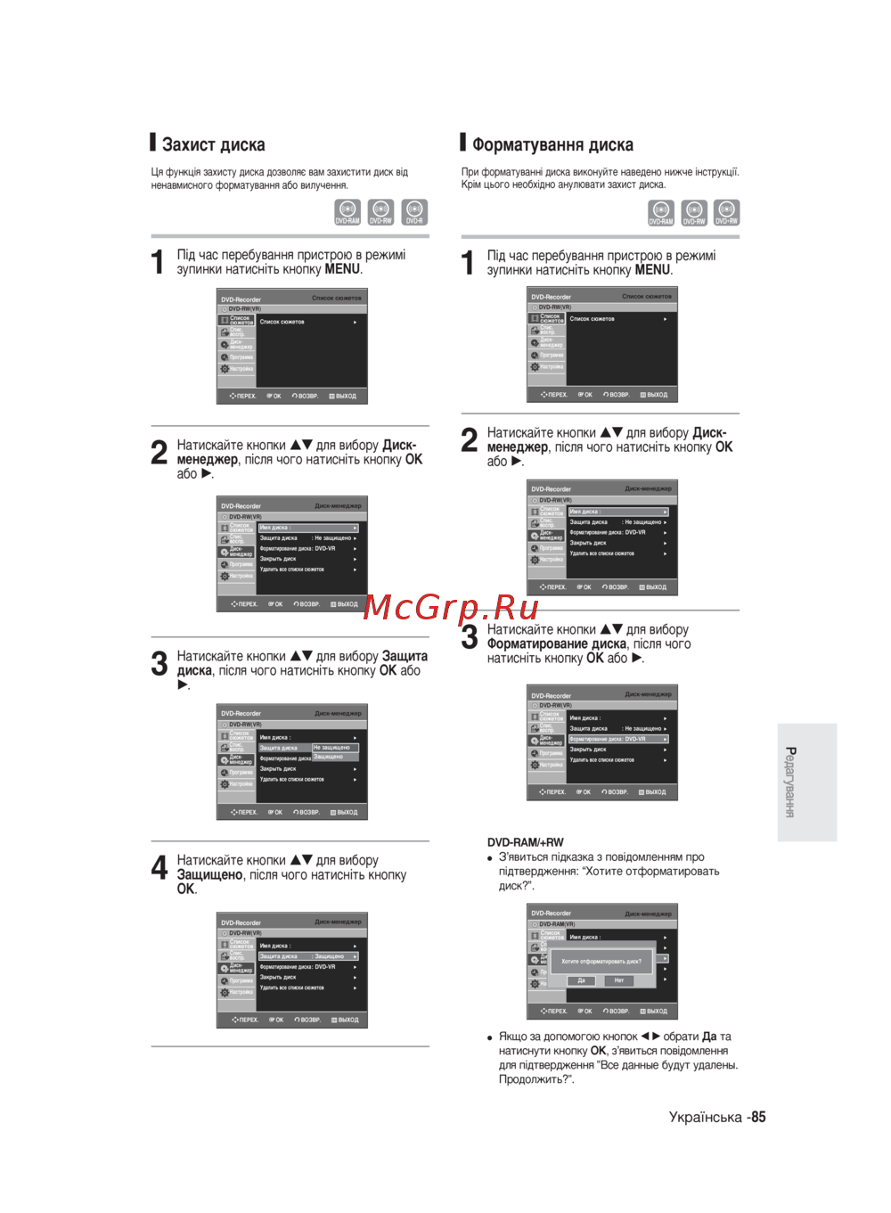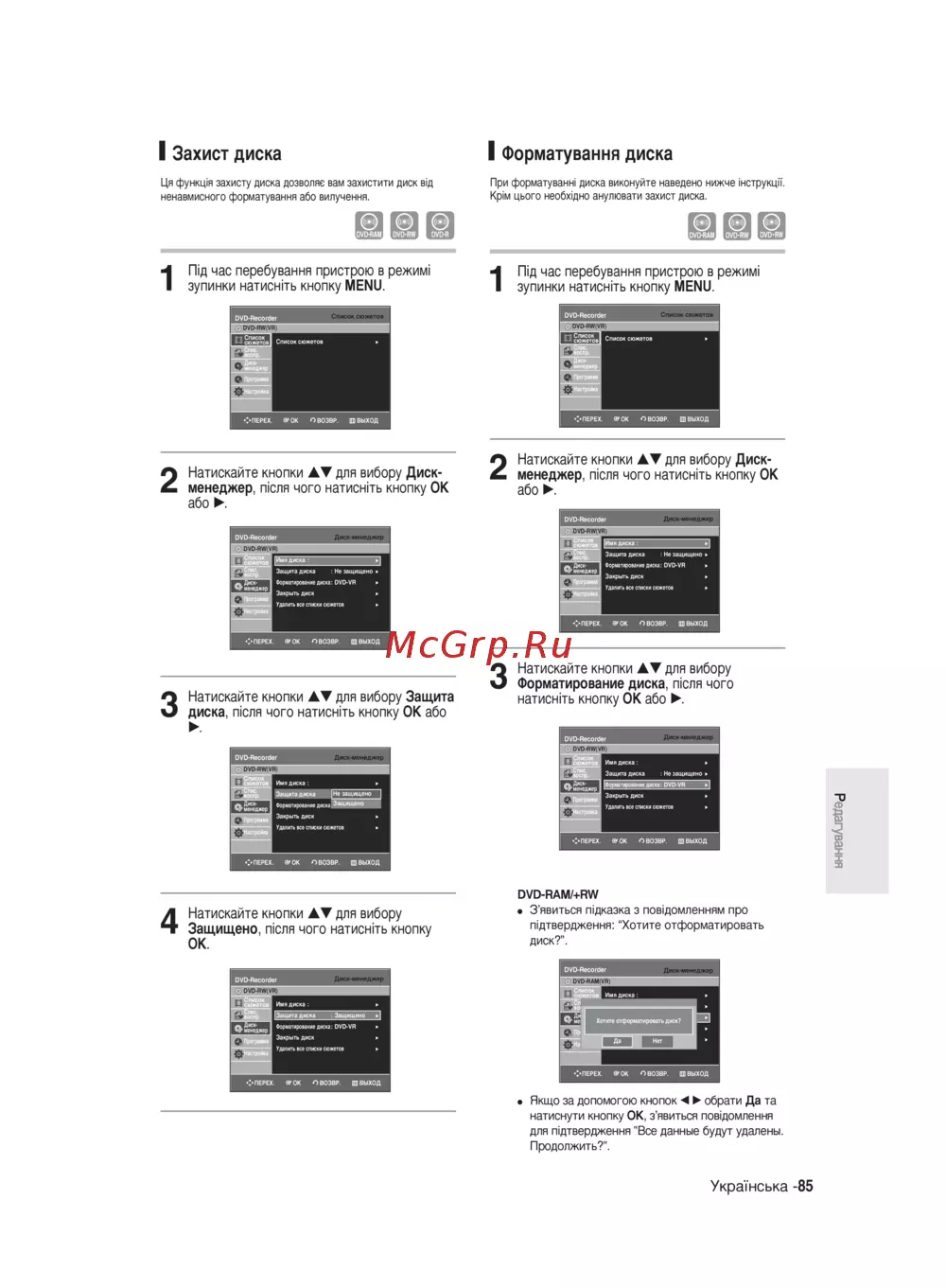 Samsung DVD-R140 MK — як захистити та форматувати диск: покрокова інструкція [193/216]