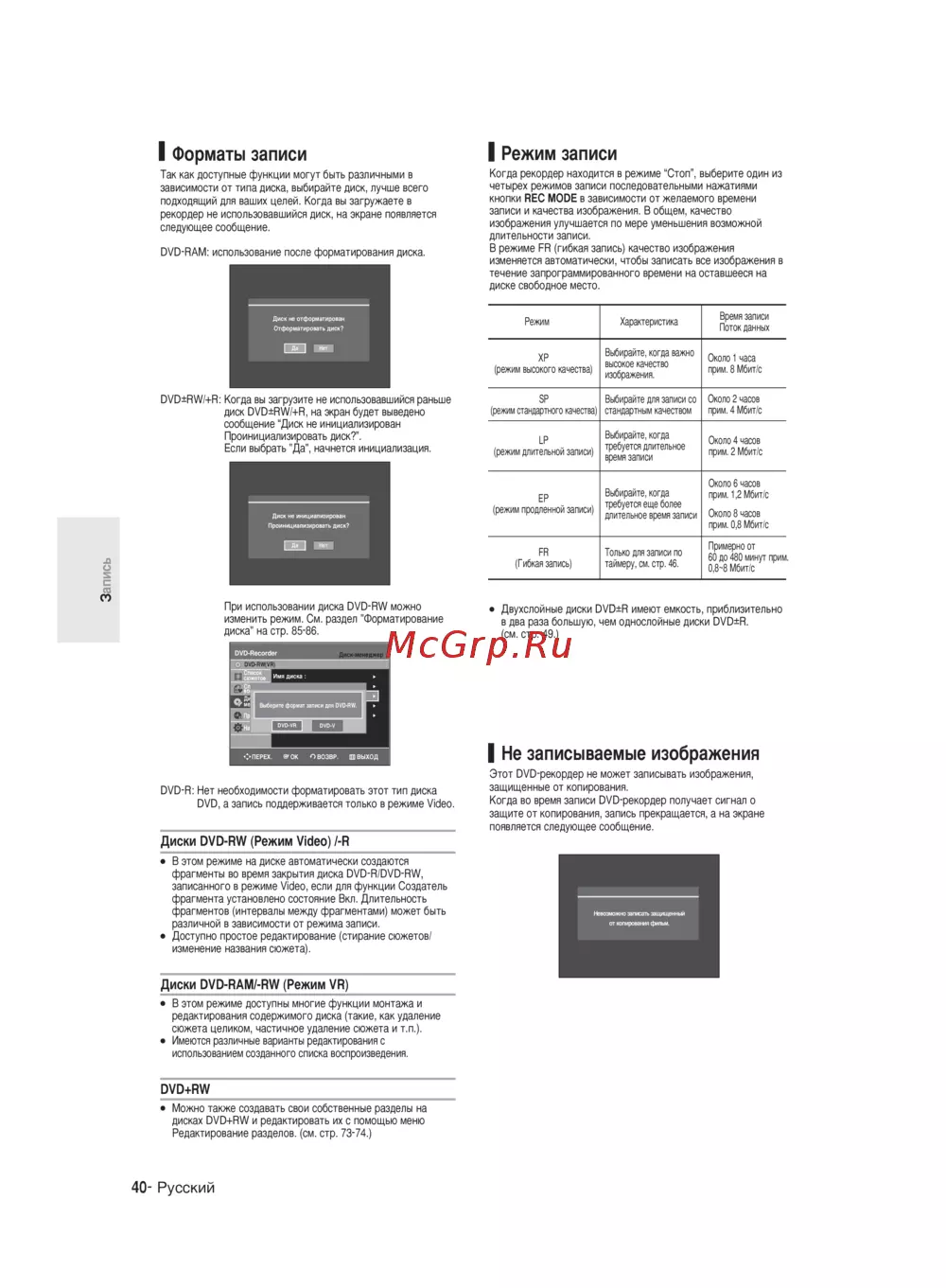 Samsung DVD-R140 MK — обзор режимов записи и форматов дисков для рекордеров [40/216]