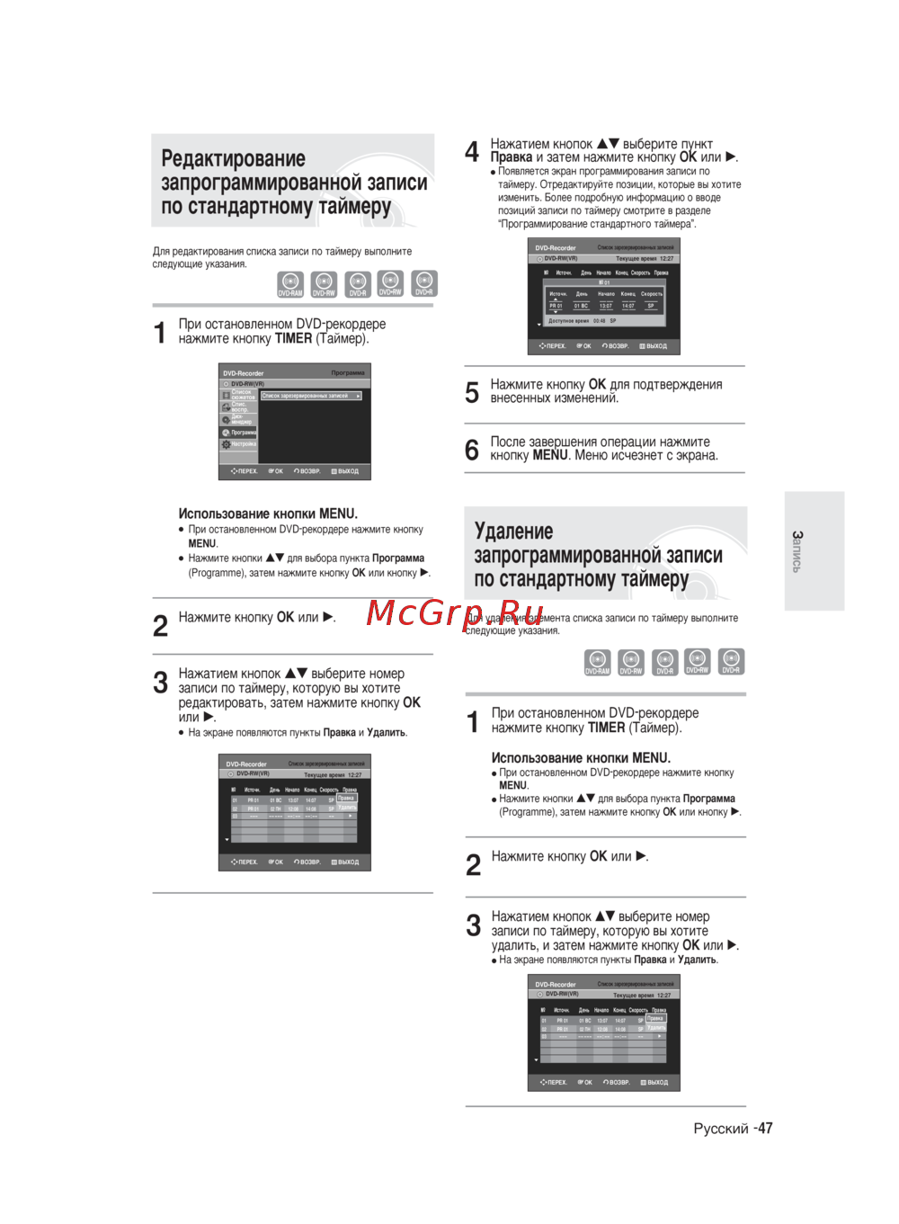 Samsung DVD-R140 MK — редактирование и удаление записей по таймеру на DVD-рекордере [47/216]