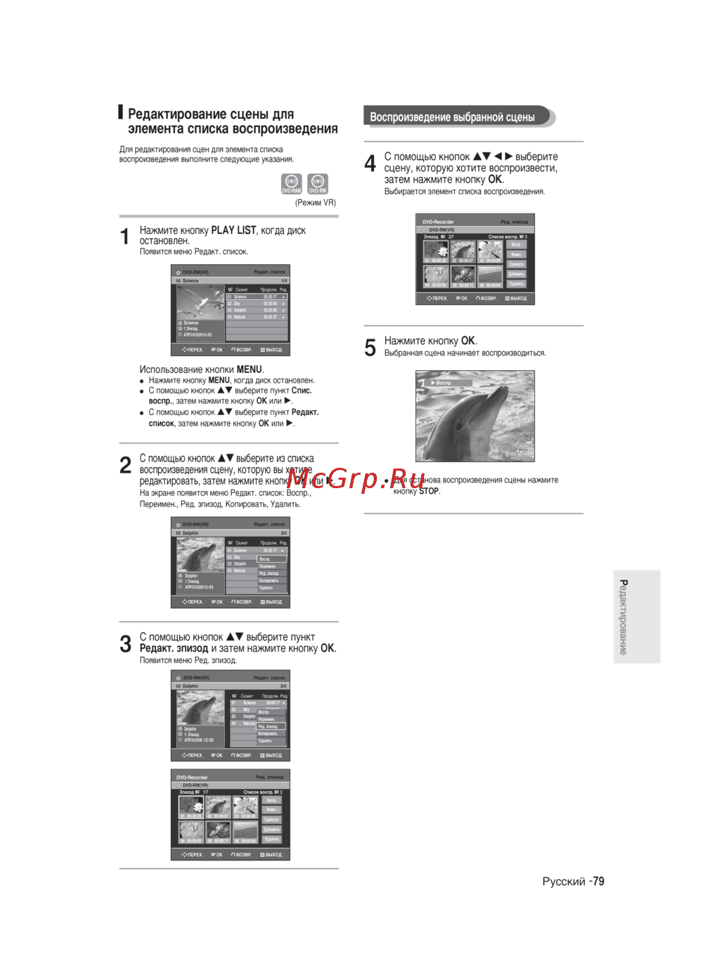 Samsung DVD-R140 MK — редактирование сцен в списке воспроизведения: пошаговое руководство [79/216]