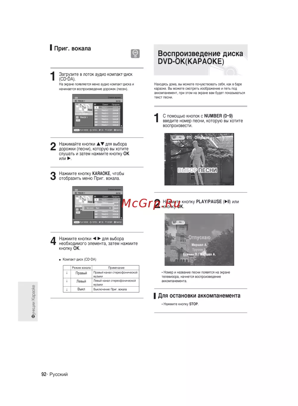 Samsung DVD-R140 MK — как использовать караоке систему для домашнего развлечения [92/216]