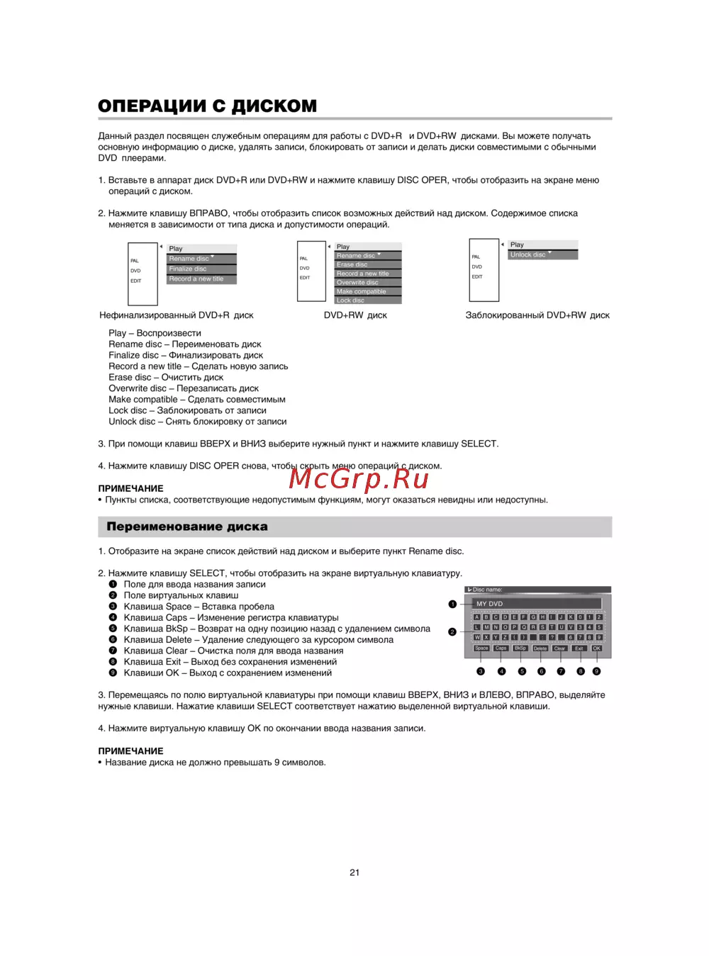 - Рекомендуемые dvd r и dvd rw диски для записи p.45