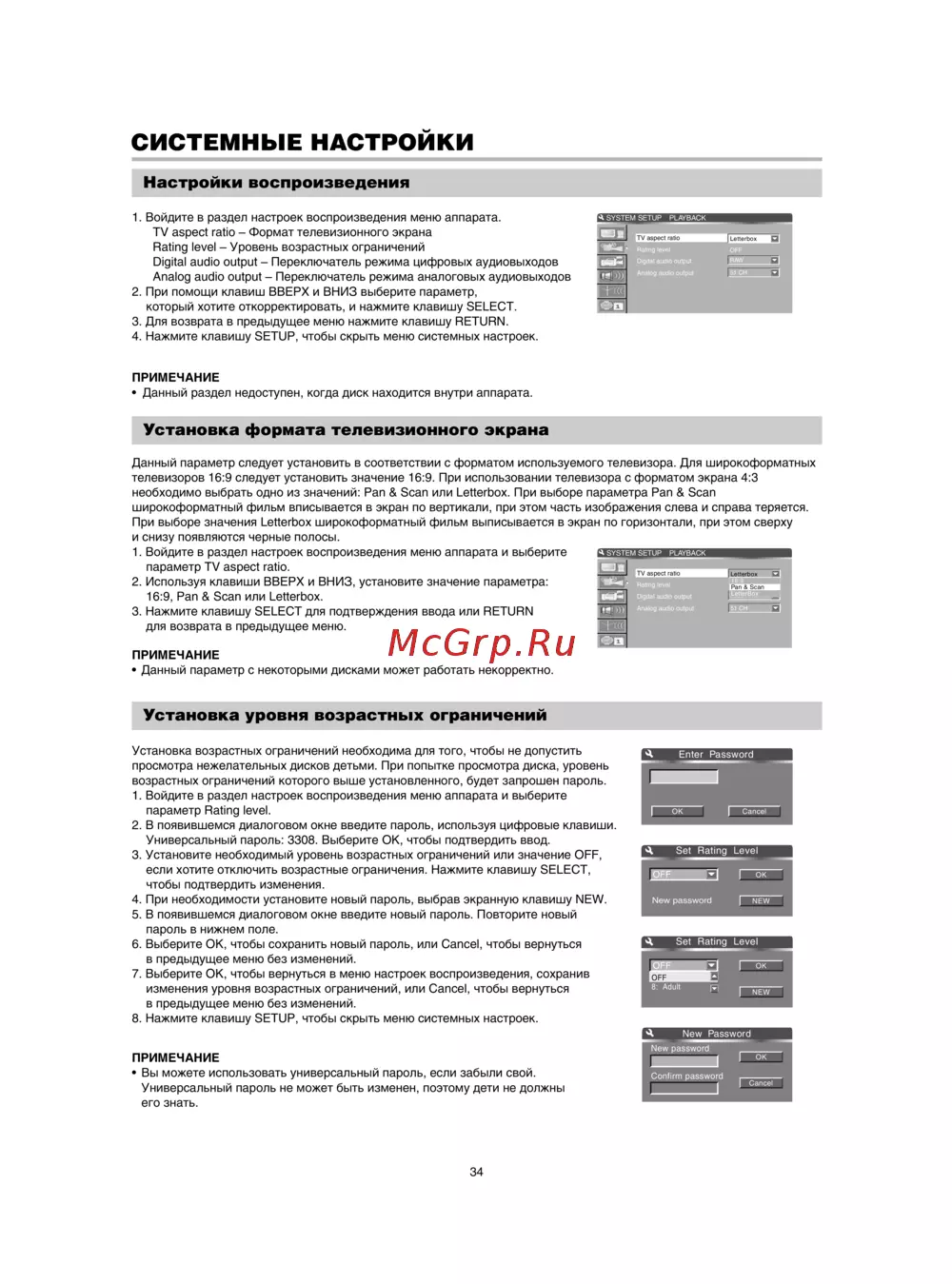 если хотите отключить возрастные ограничения. Нажмите клавишу SELECT,