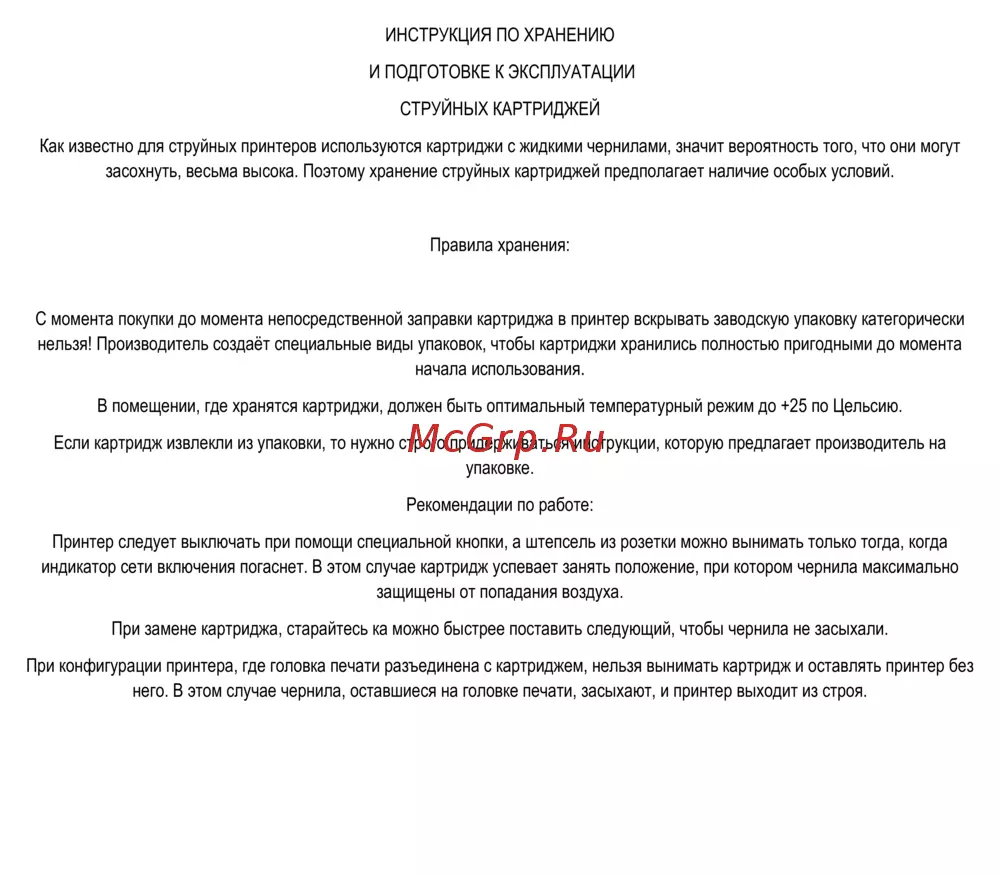 засохнуть, весьма высока. Поэтому хранение струйных картриджей предполагает наличие особых условий.