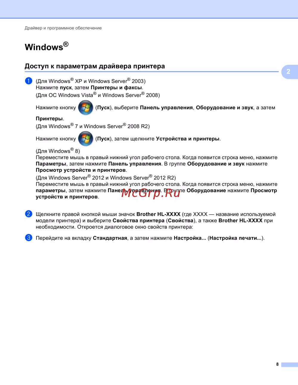 Brother HL1223WR [16/87] Доступ к параметрам драйвера принтера