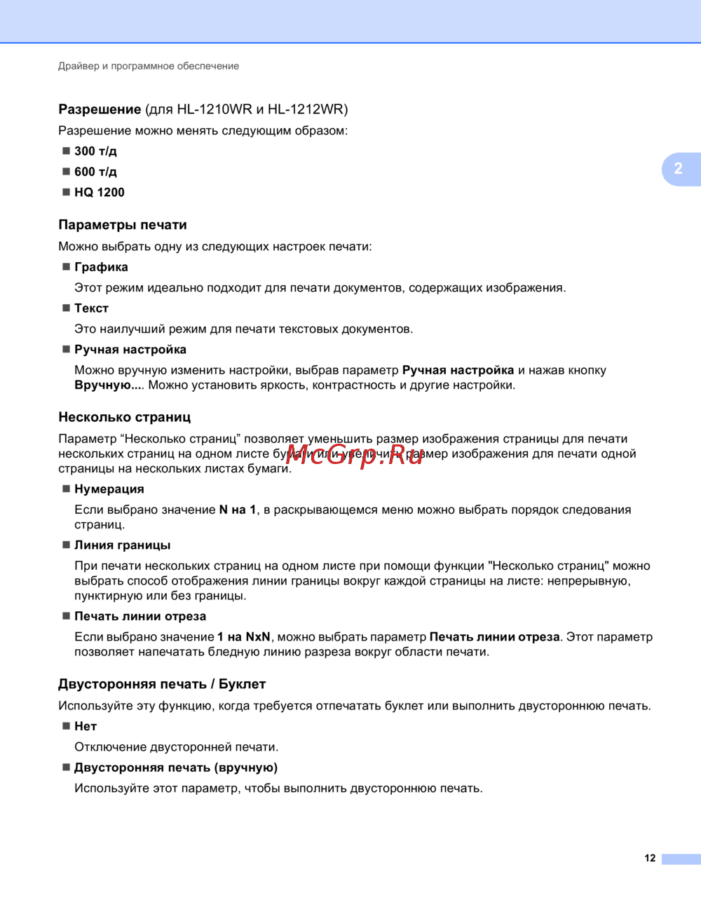 - Разрешение для hl 1210wr и hl 1212wr p.20