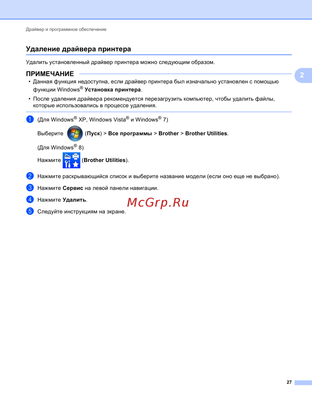 Brother HL1223WR [35/87] Удаление драйвера принтера