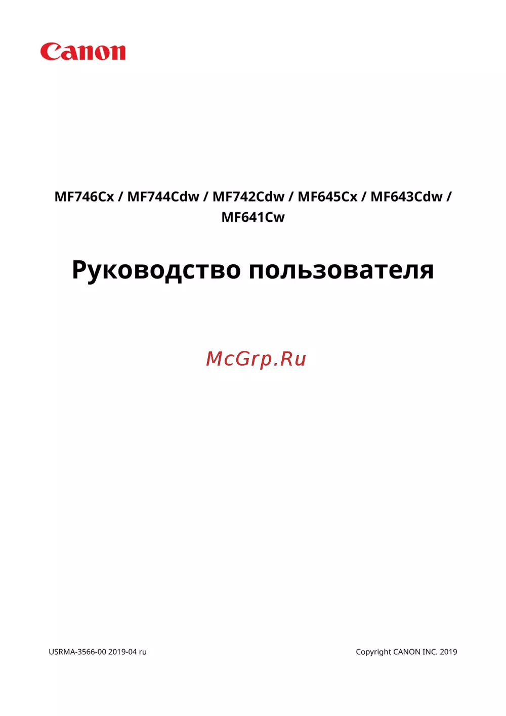 Canon i-SENSYS MF746CxИнструкция по эксплуатации -