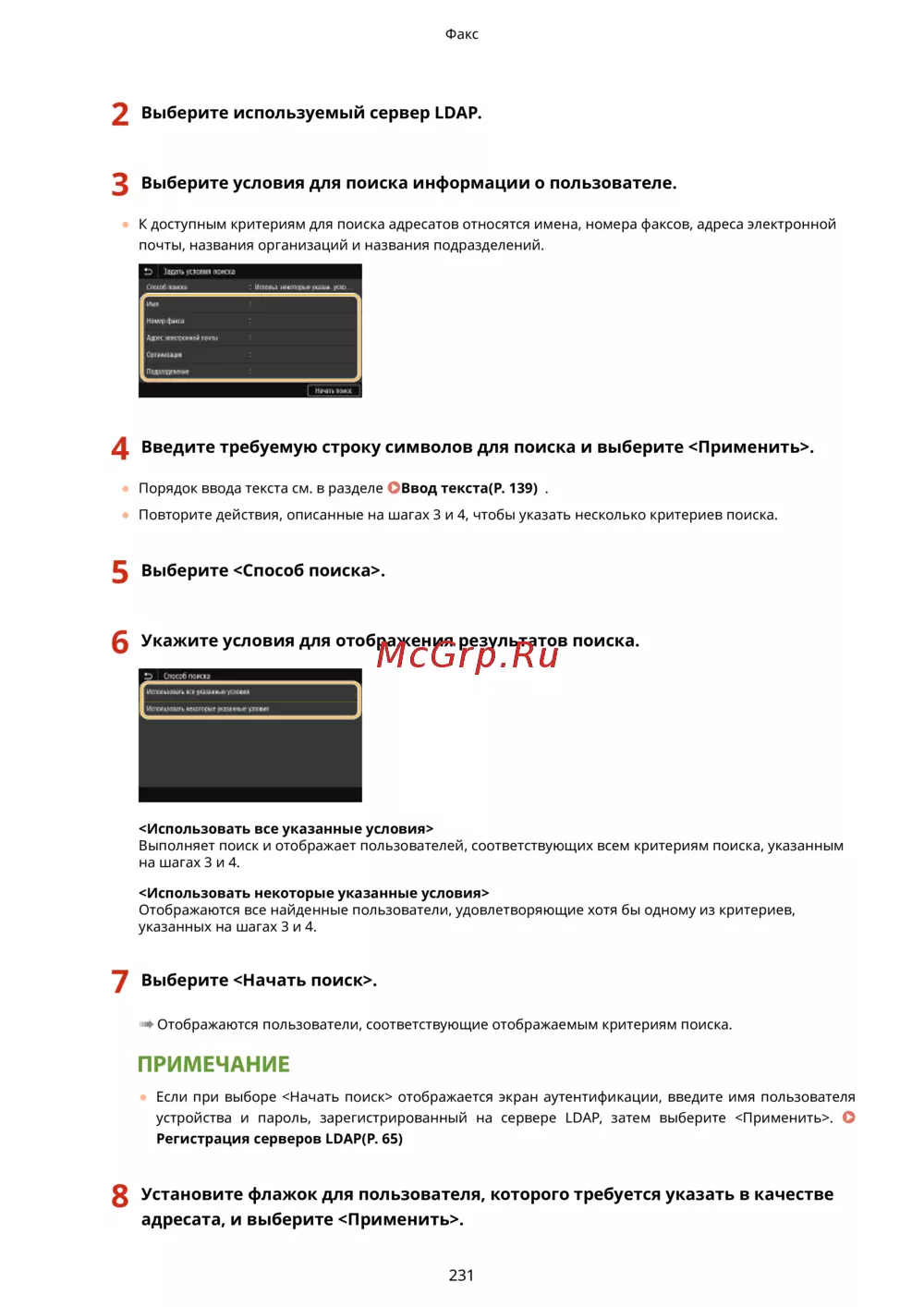 Canon i-SENSYS MF645Cx [239/799] Выберите условия для поиска информации о пользователе