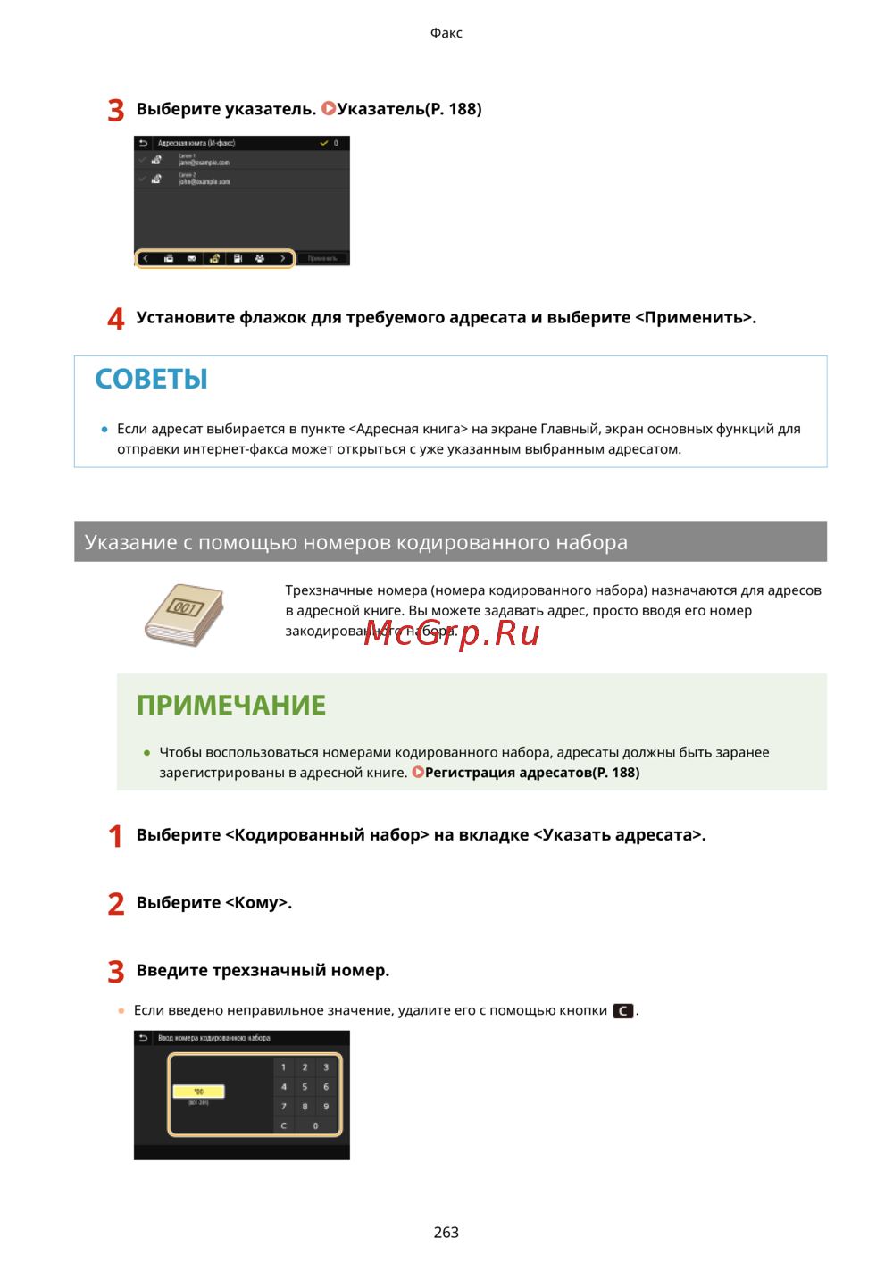 Canon i-SENSYS MF645Cx — как выбрать и зарегистрировать адресата для интернет-факса [271/799]