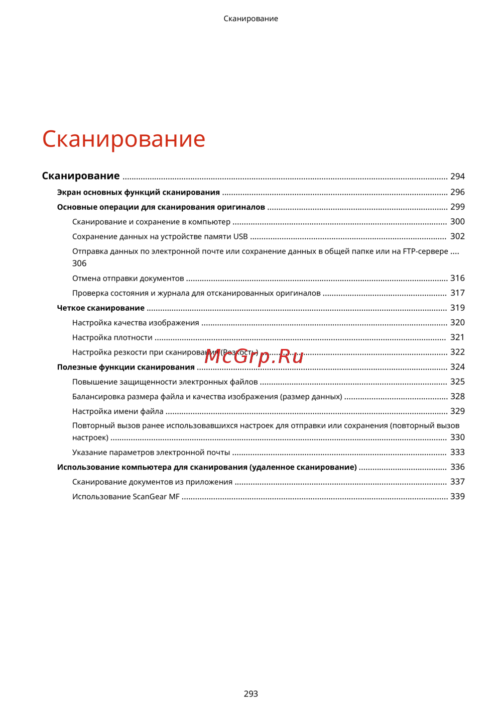 Основные операции для сканирования оригиналов ................................................................................ 299