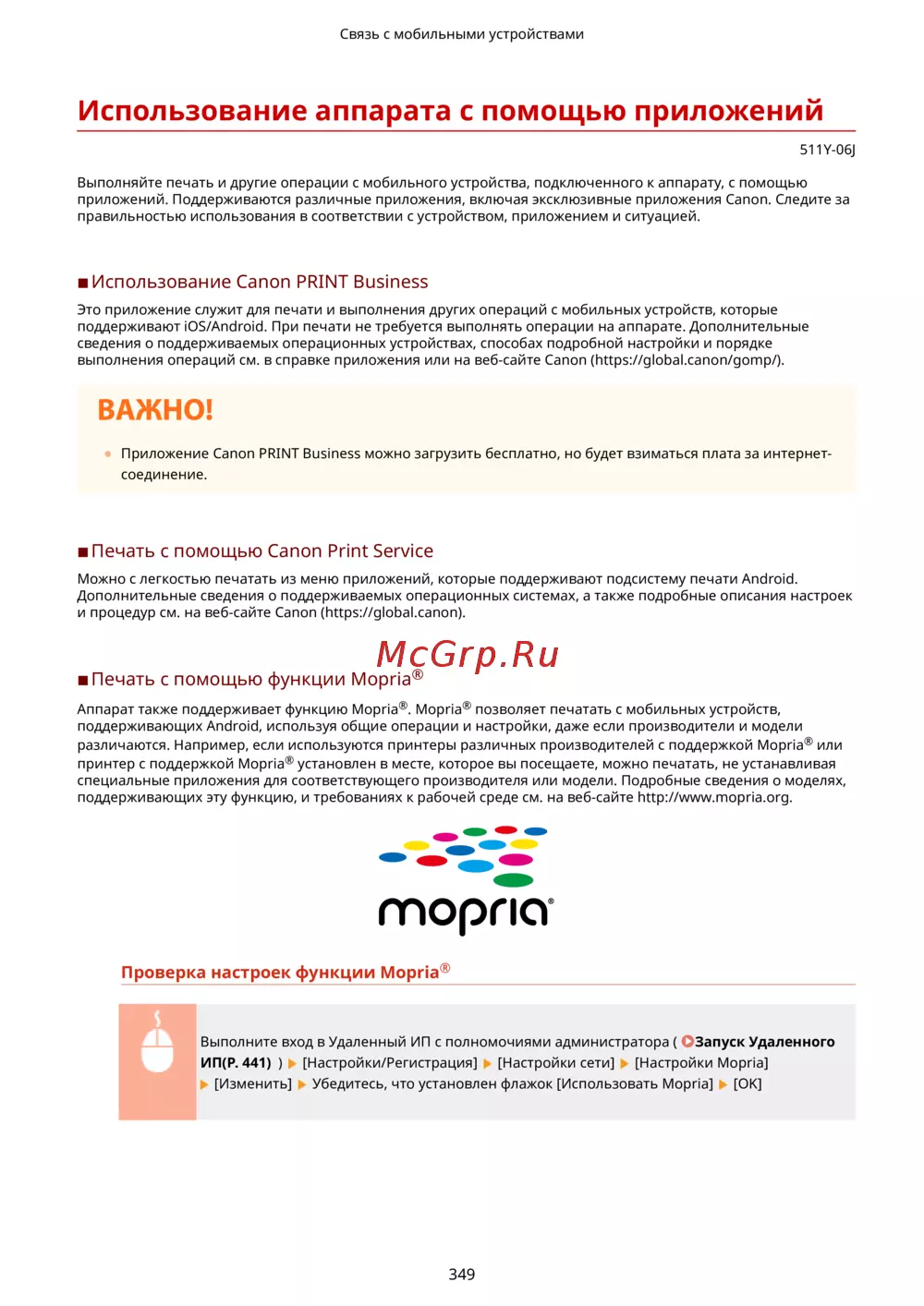 ИП(P. 441) ) [Настройки/Регистрация] [Настройки сети] [Настройки Mopria]