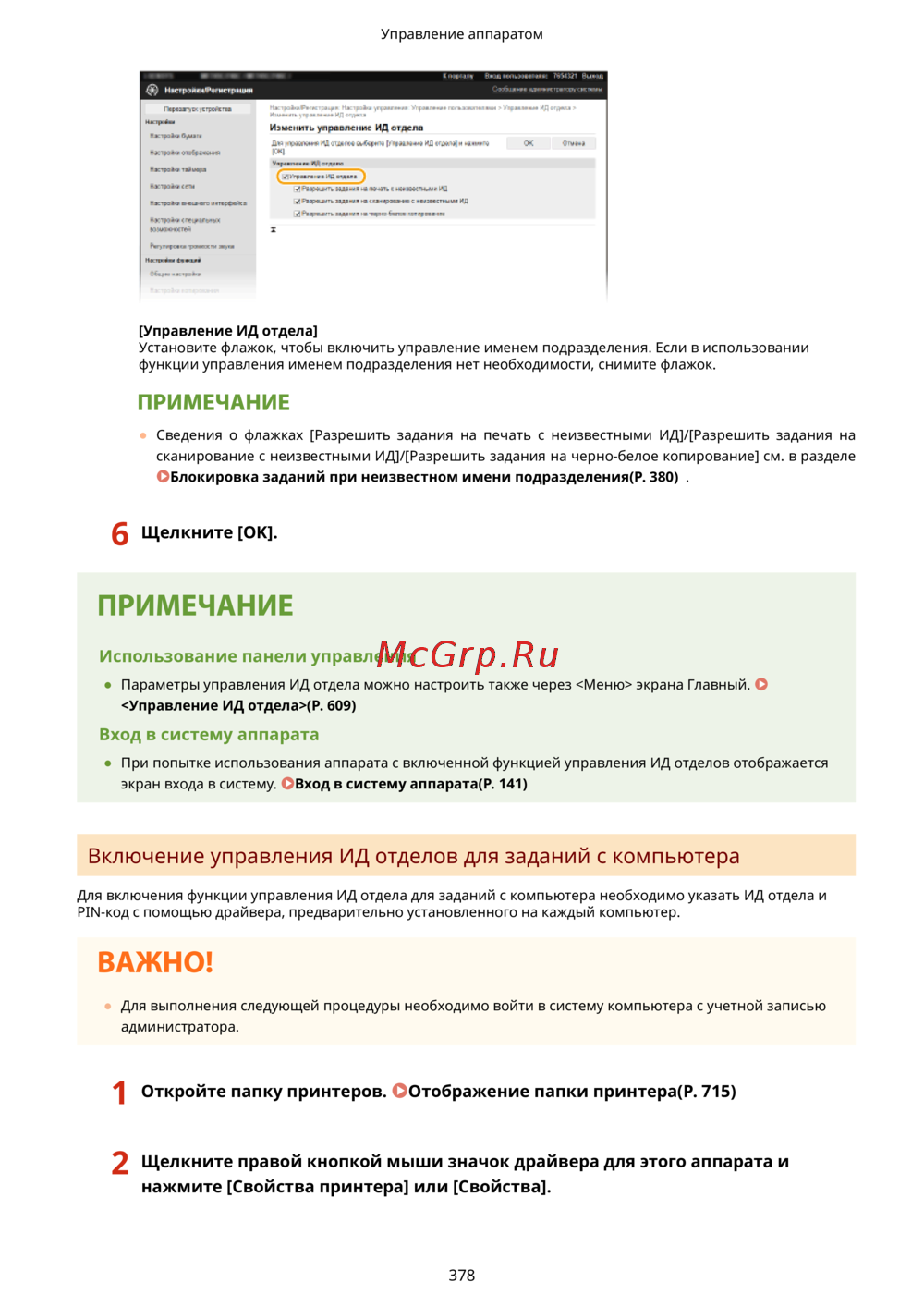 Блокировка заданий при неизвестном имени подразделения(P. 380) .