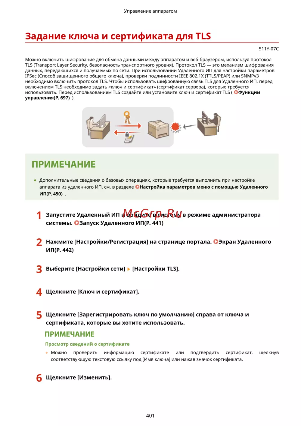жно включить шифрование для обмена данными между аппаратом и веб-браузером, используя протокол