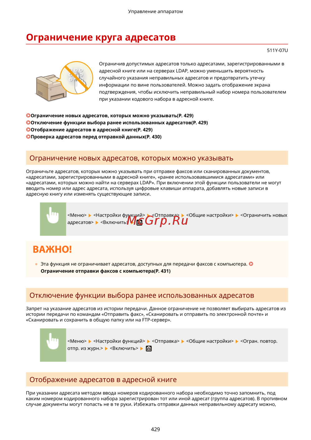 Canon i-SENSYS MF645Cx [437/799] Ограничение новых адресатов которых можно указывать