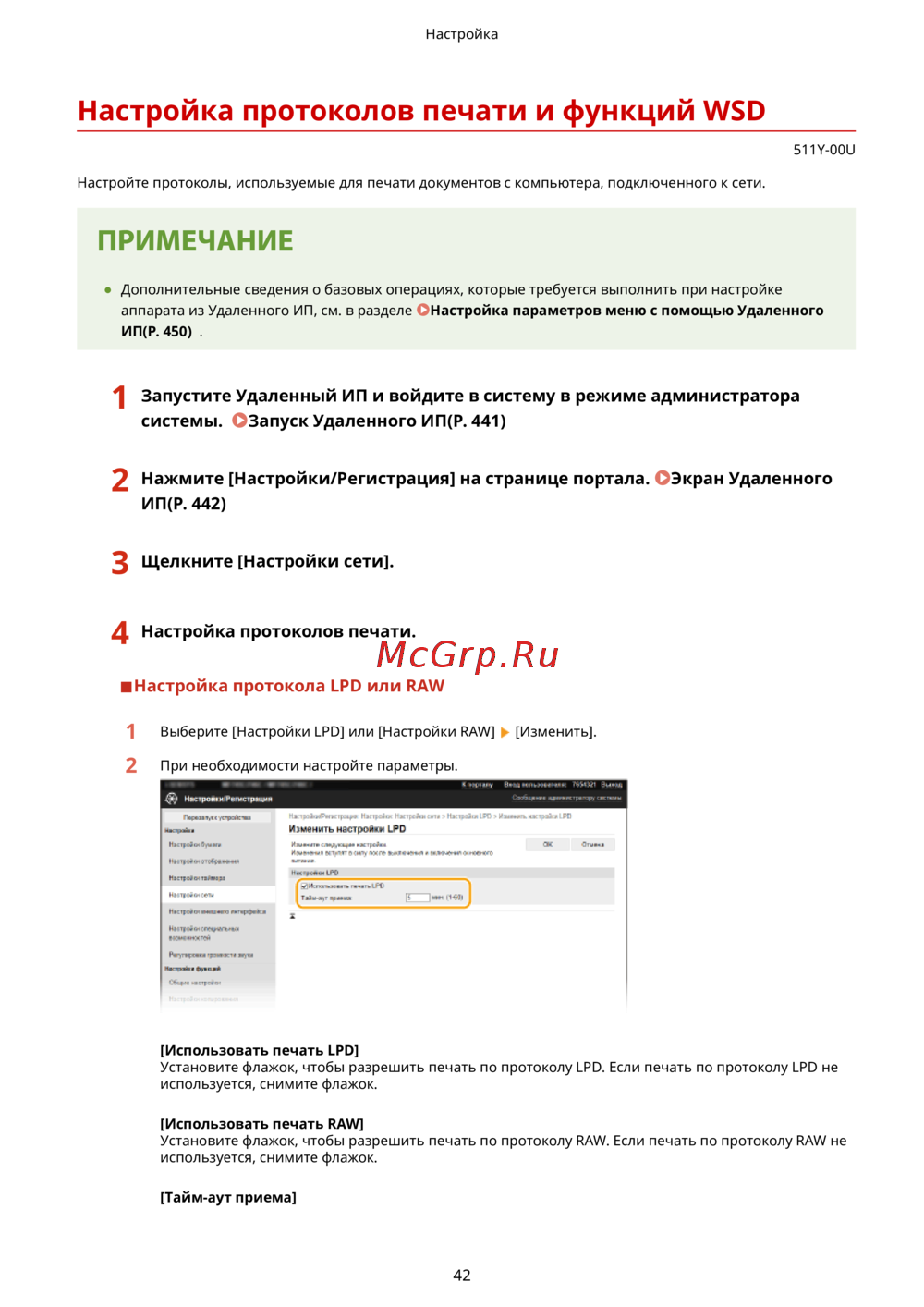 Настройка протокола LPD или RAW