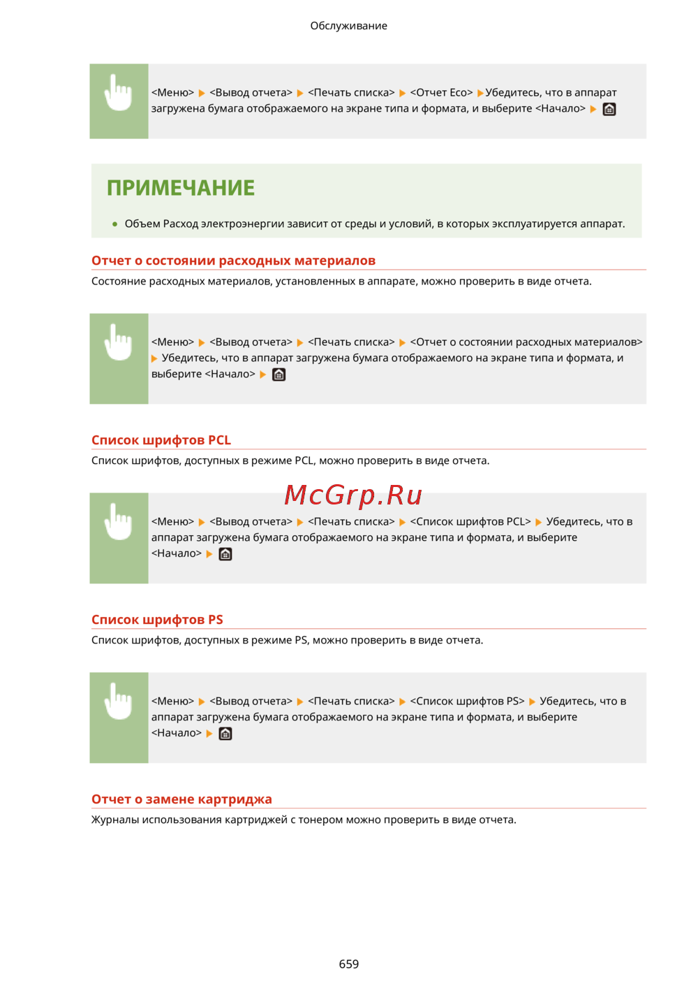 <Меню> <Вывод отчета> <Печать списка> <Отчет Eco> Убедитесь, что в аппарат