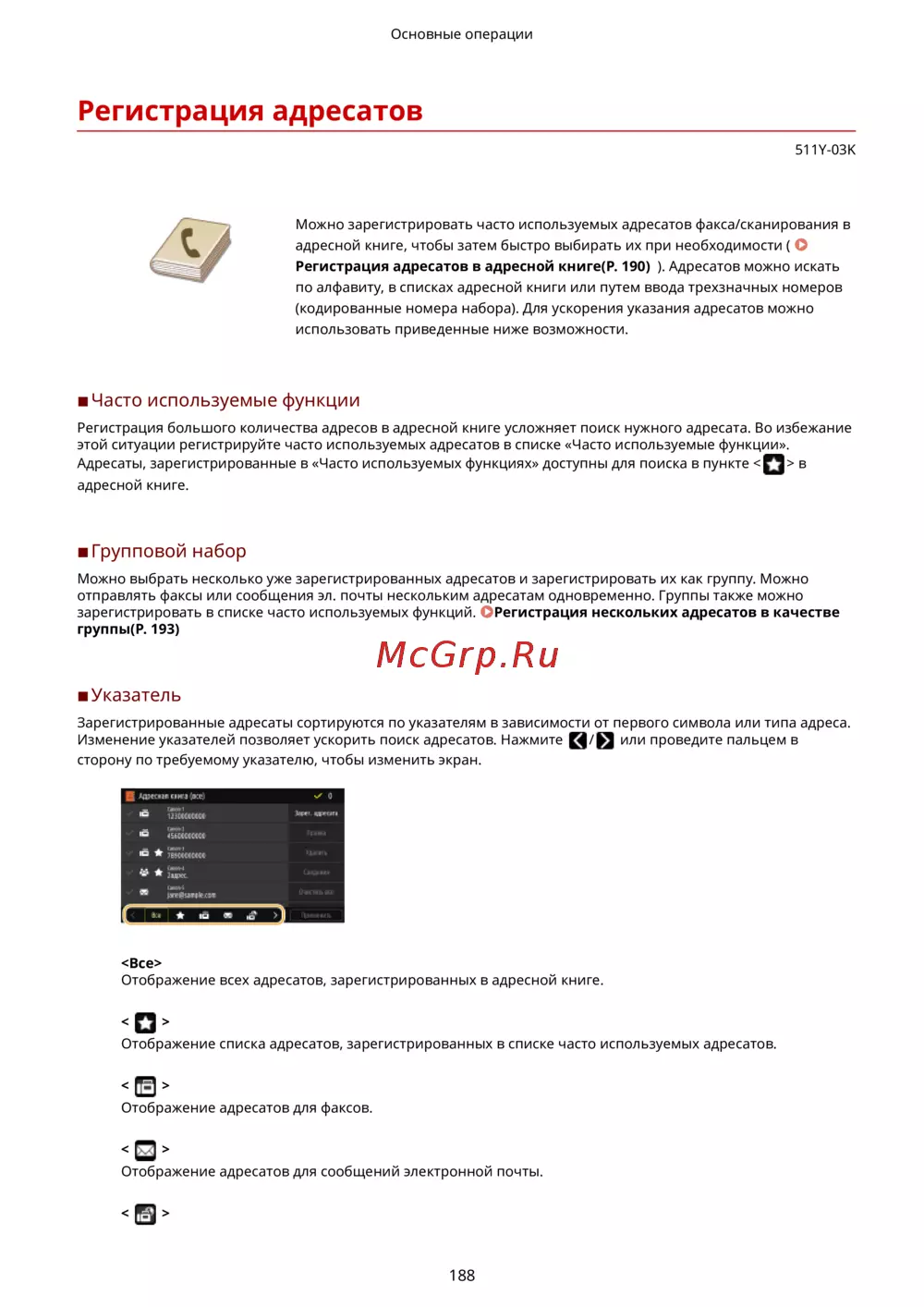 Регистрация адресатов в адресной книге(P. 190) ). Адресат