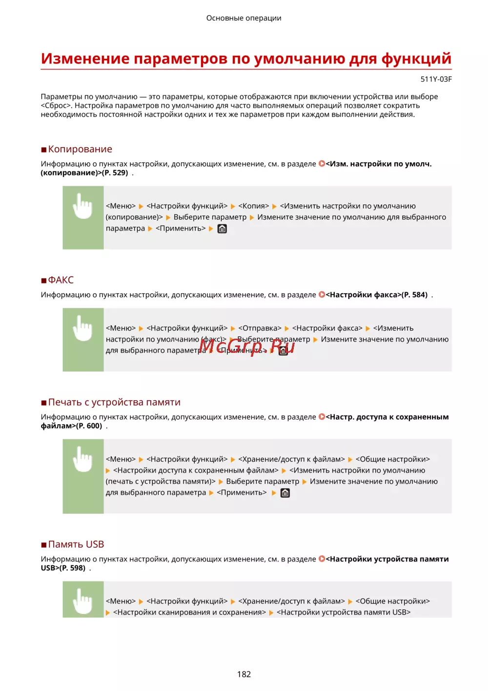 (печать с устройства памяти)> Выберите параметр Измените значение по умолчанию