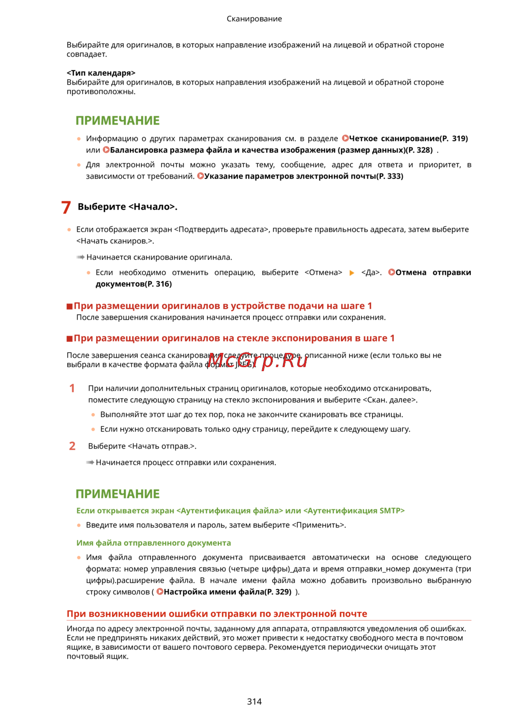 ● Информацию о других параметрах сканирования см. в разделе Четкое сканирование(P. 319)