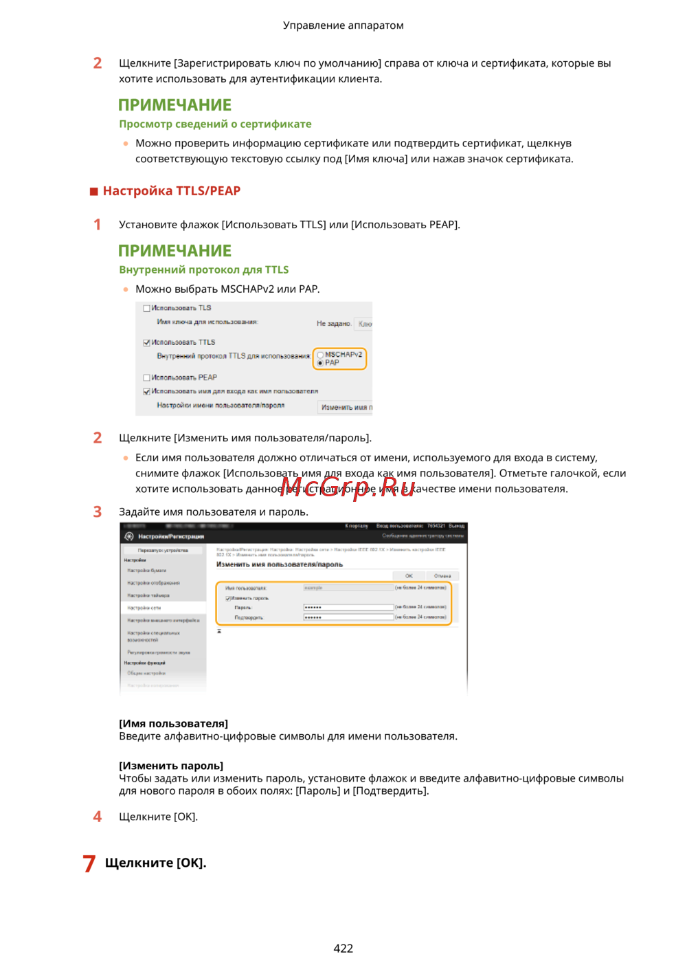 Установите флажок [Использовать TTLS] или [Использовать PEAP].