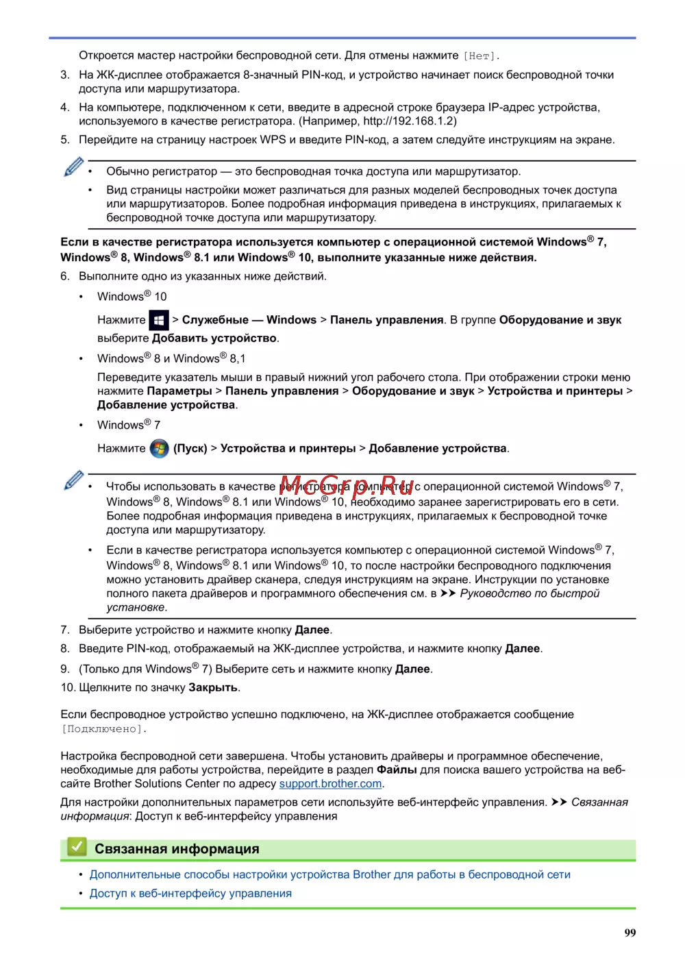 • Дополнительные способы настройки устройства Brother для работы в беспроводной сети