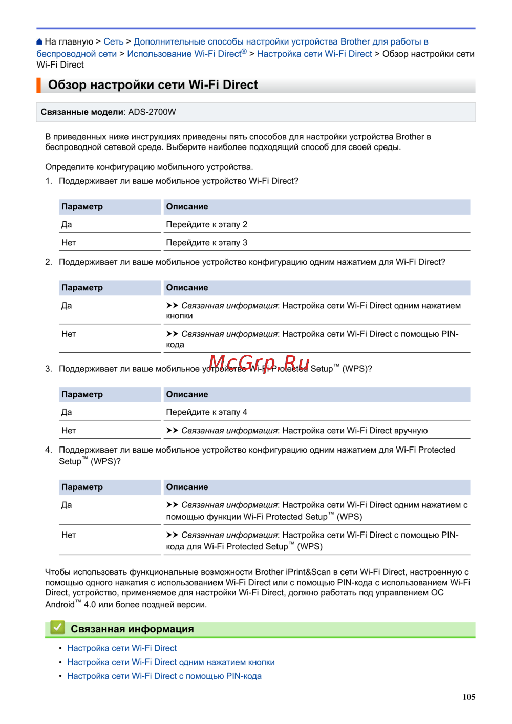 Brother ADS-2200 (ADS2200TC1) — настройка устройства для работы в Wi-Fi Direct: пошаговое руководство [109/215]