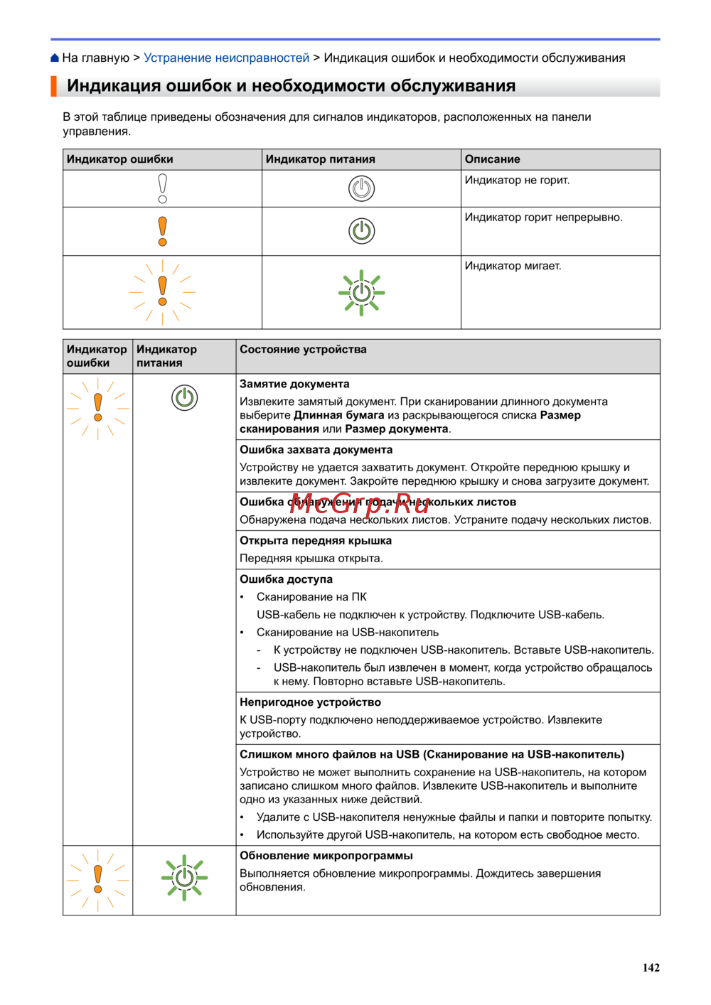 На главную > Устранение неисправностей > Индикация ошибок и необходимости обслуживания