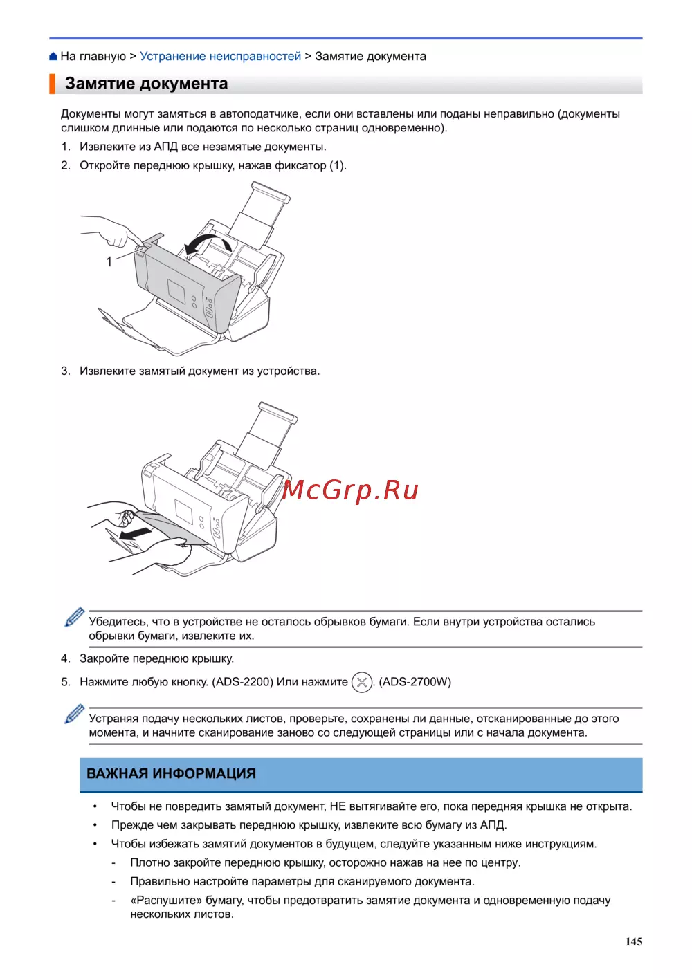 • Чтобы избежать замятий документов в будущем, следуйте указанным ниже инструкциям.