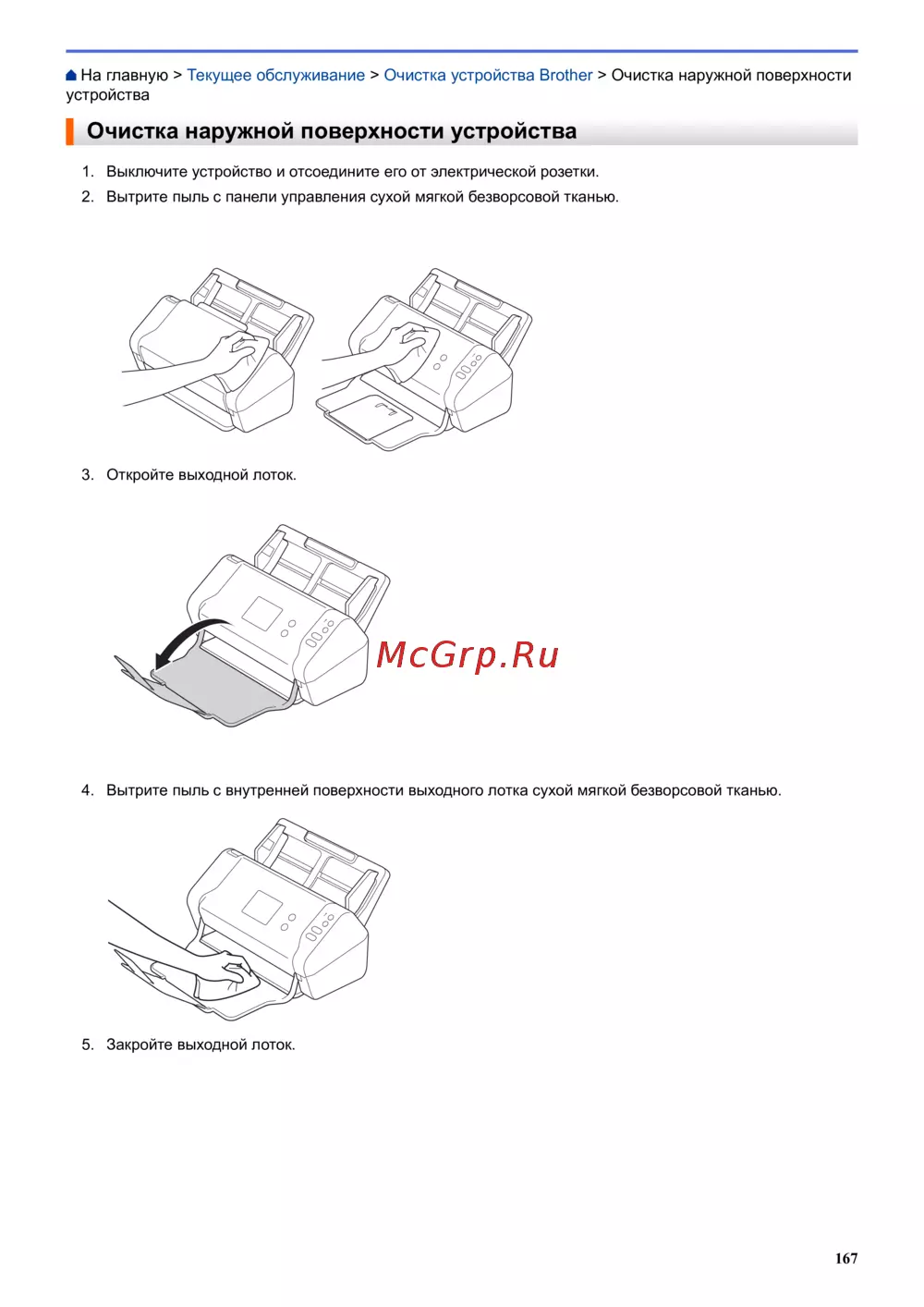 Brother ADS-2200 (ADS2200TC1) [171/215] Очистка наружной поверхности устройства