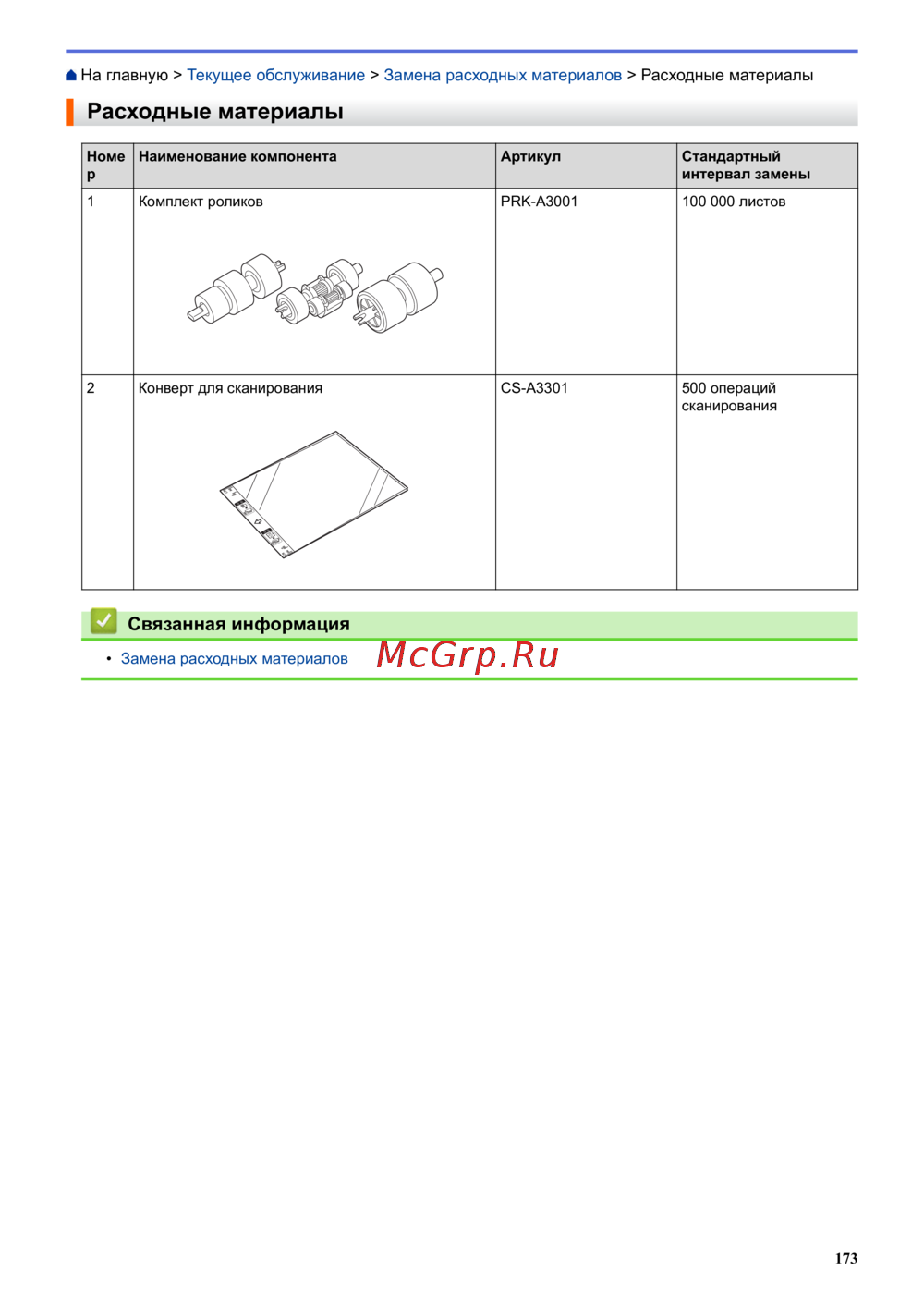 На главную > Текущее обслуживание > Замена расходных материалов > Расходные материалы