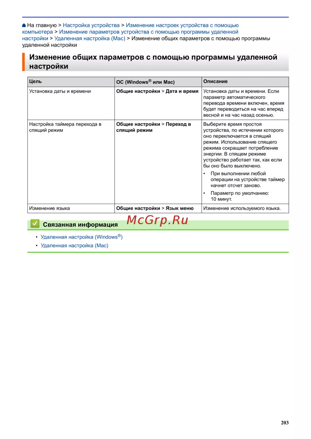 - Настройка устройства brother с помощью программы удаленной настройки mac p.205