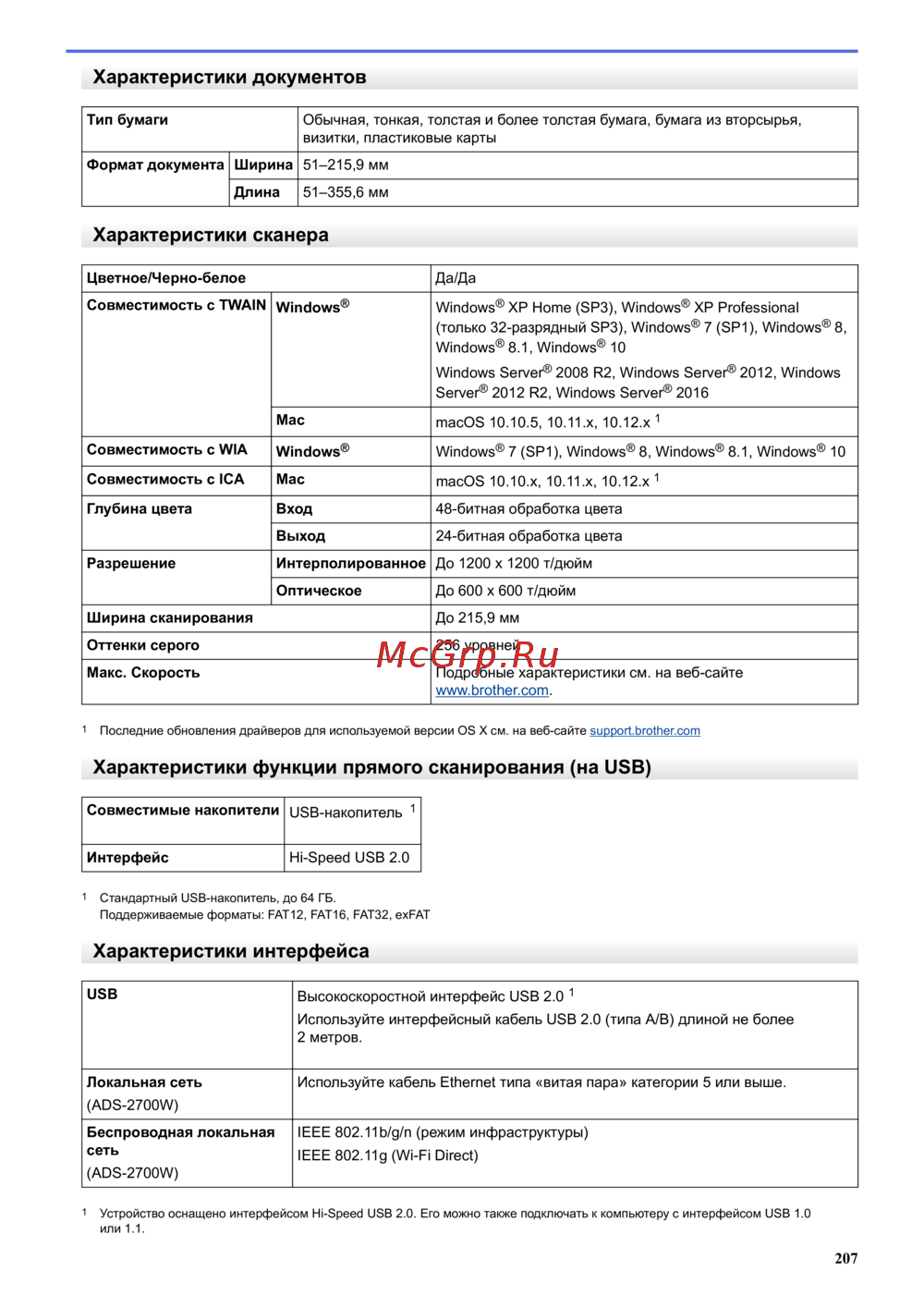 - Характеристики функции прямого сканирования на usb p.211