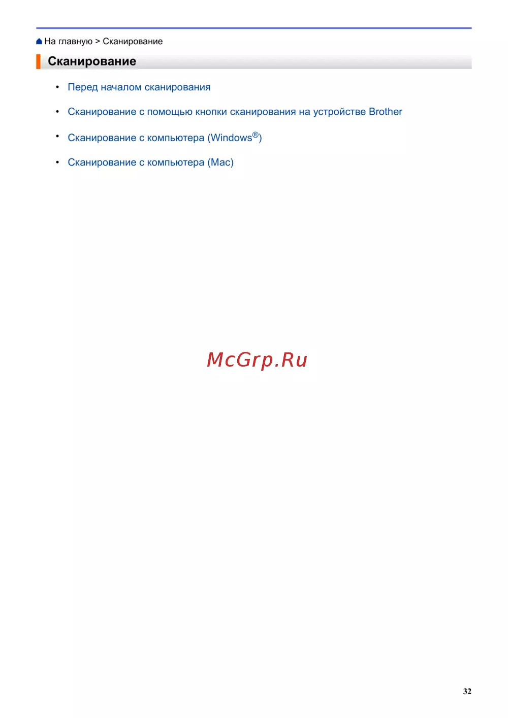 - Сканирование с помощью кнопки сканирования на устройстве brother p.38