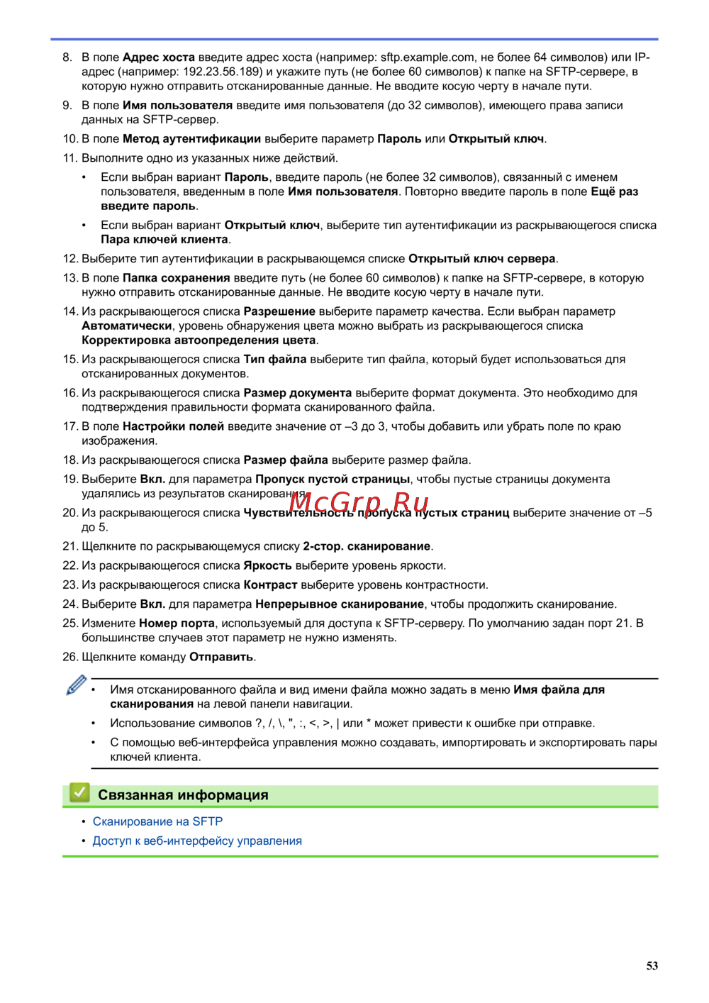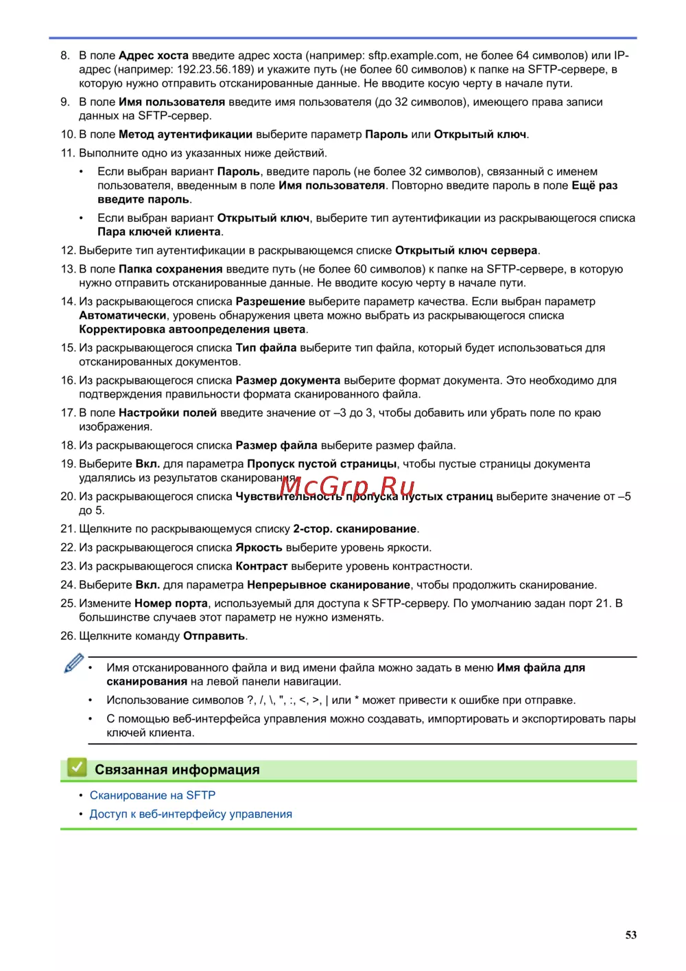 • Сканирование на SFTP