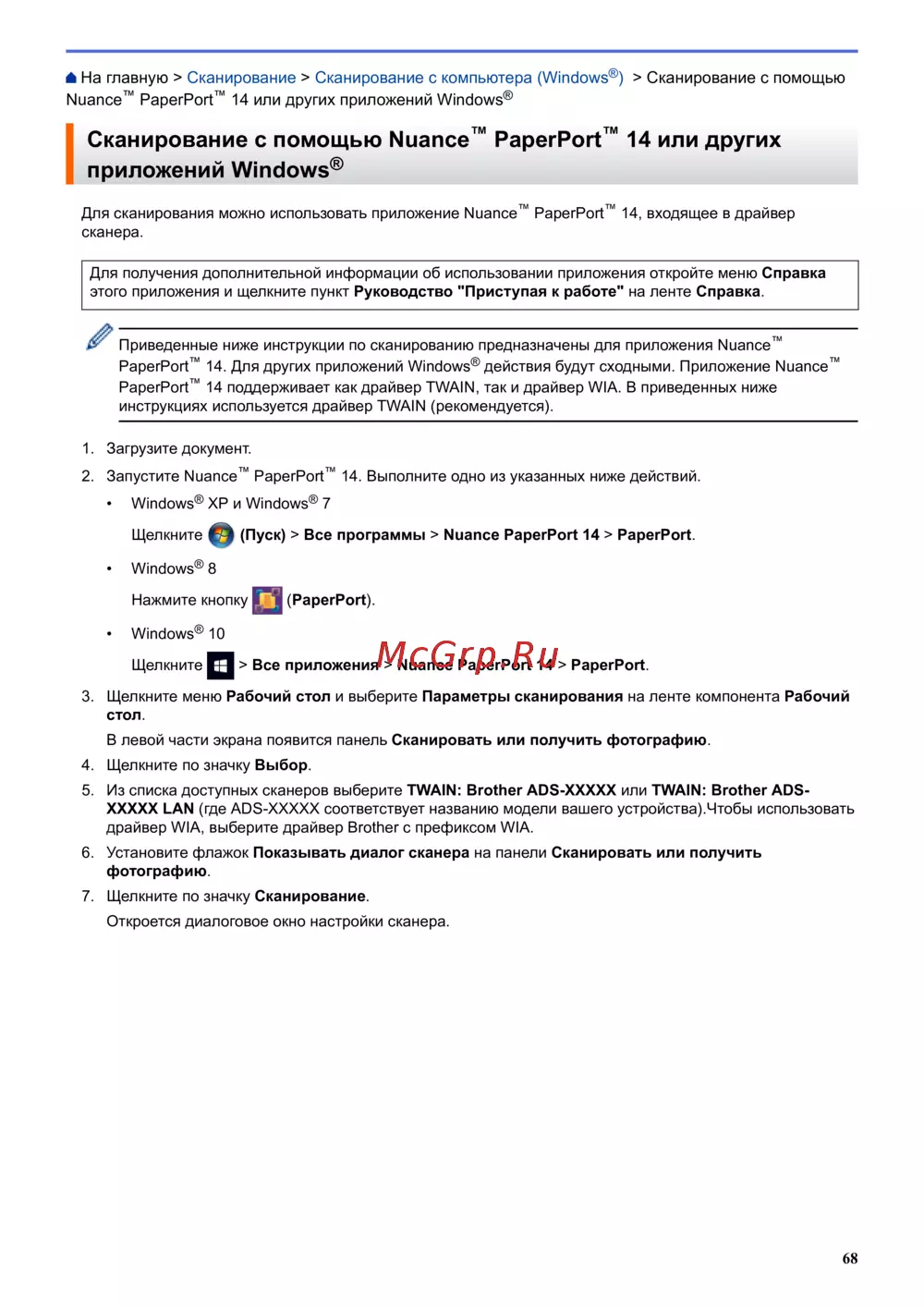 Приведенные ниже инструкции по сканированию предназначены для приложения Nuance