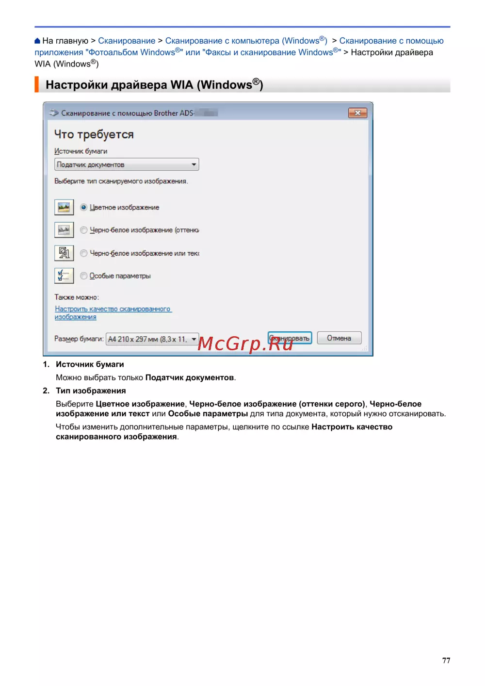 Brother ADS-2200 (ADS2200TC1) — настройки драйвера WIA для сканирования на Windows [81/215]