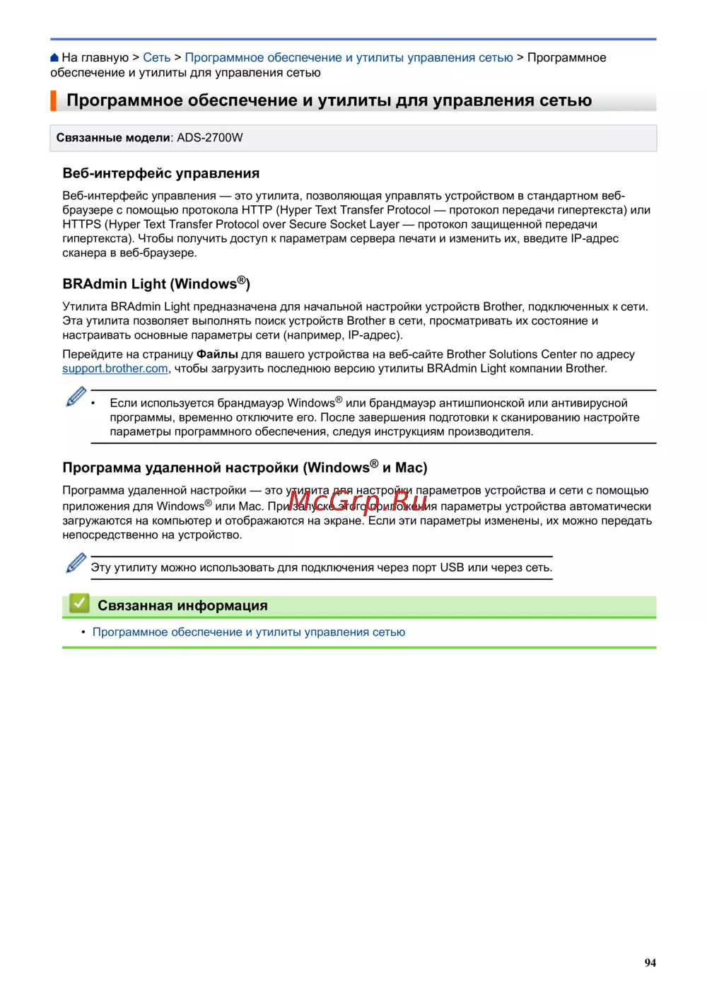 Brother ADS-2200 (ADS2200TC1) — программное обеспечение и утилиты для управления сетью [98/215]
